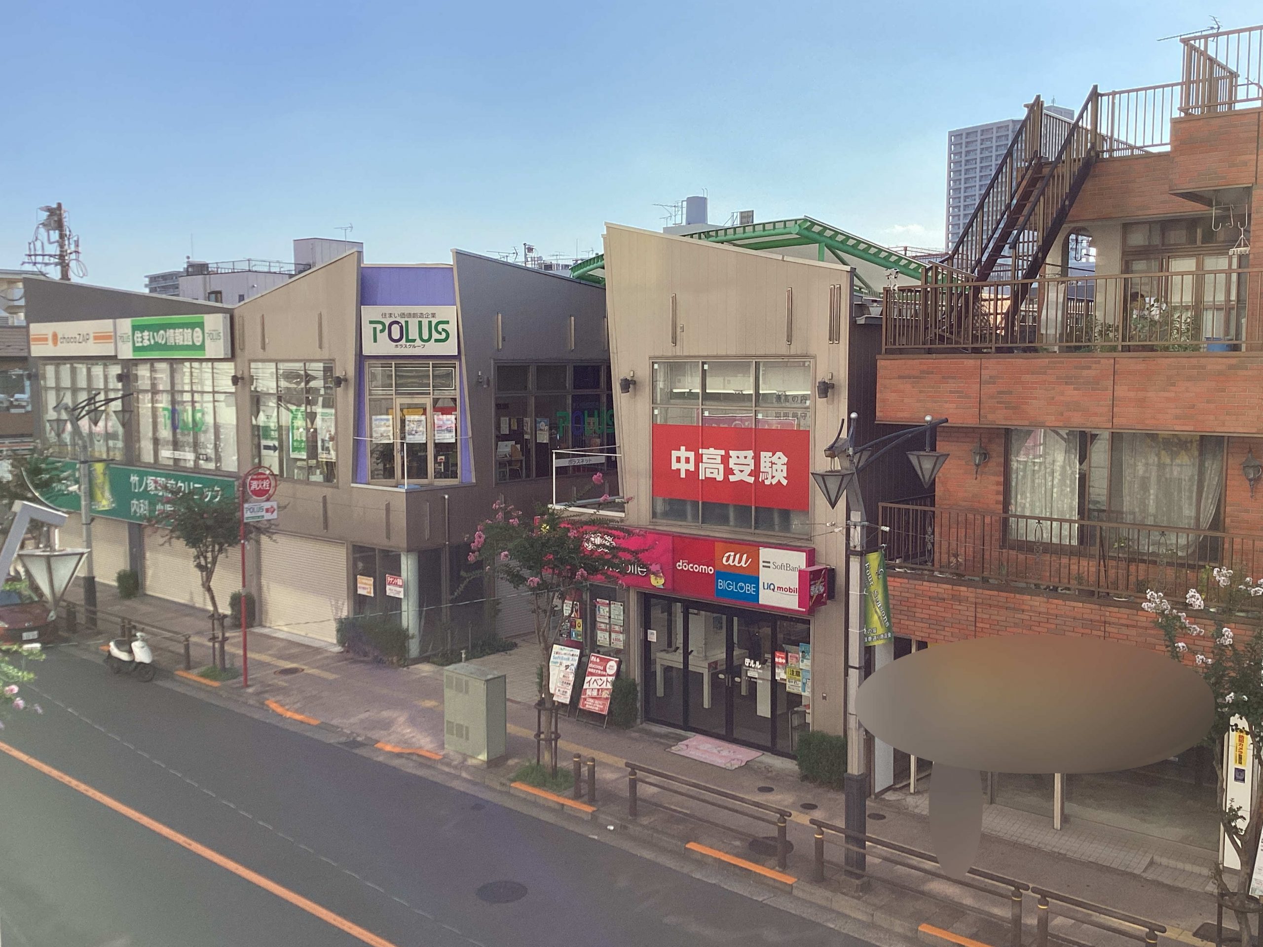 1Fに竹ノ塚駅前クリニックや、薬局がある建物の2Fにあります。