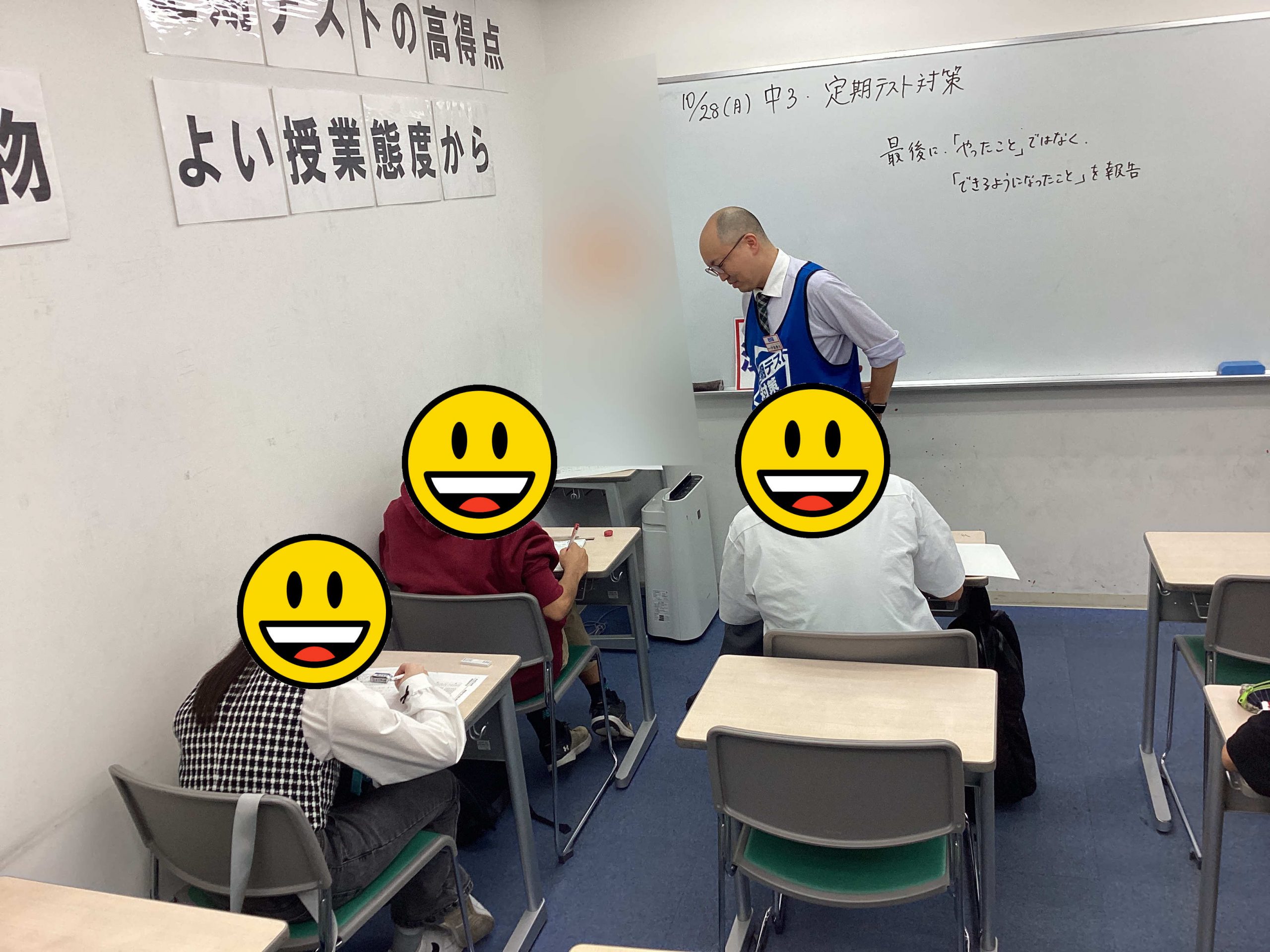 もう、冷やし中華を食べるほど暑くはありませんが、教室にはテスト勉強する