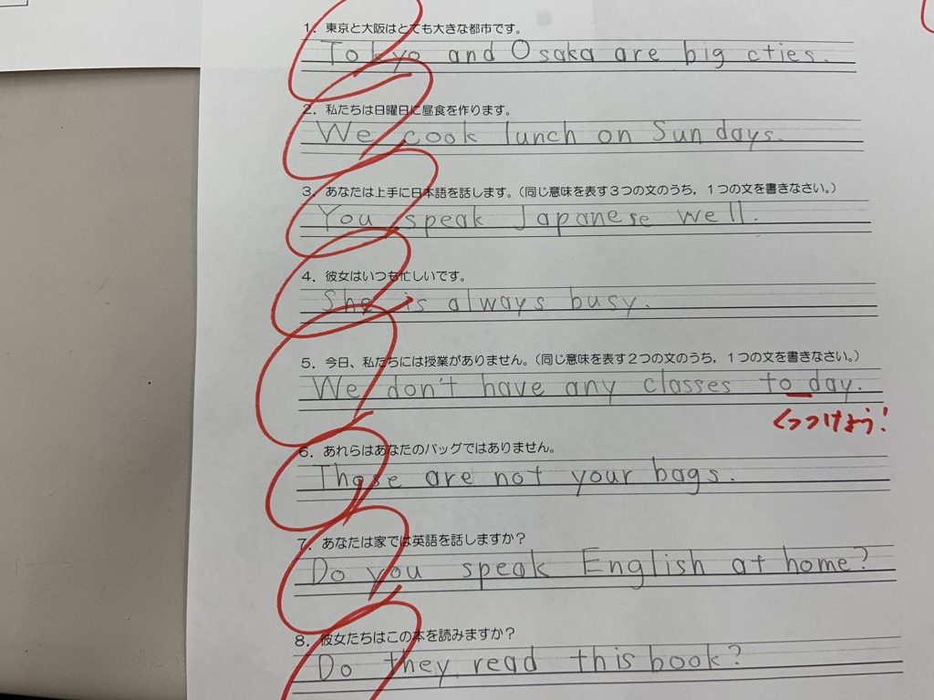 私も解いてみましたが、今回は「s」のつけ忘れに気を付けるのがポイントのテストでした。