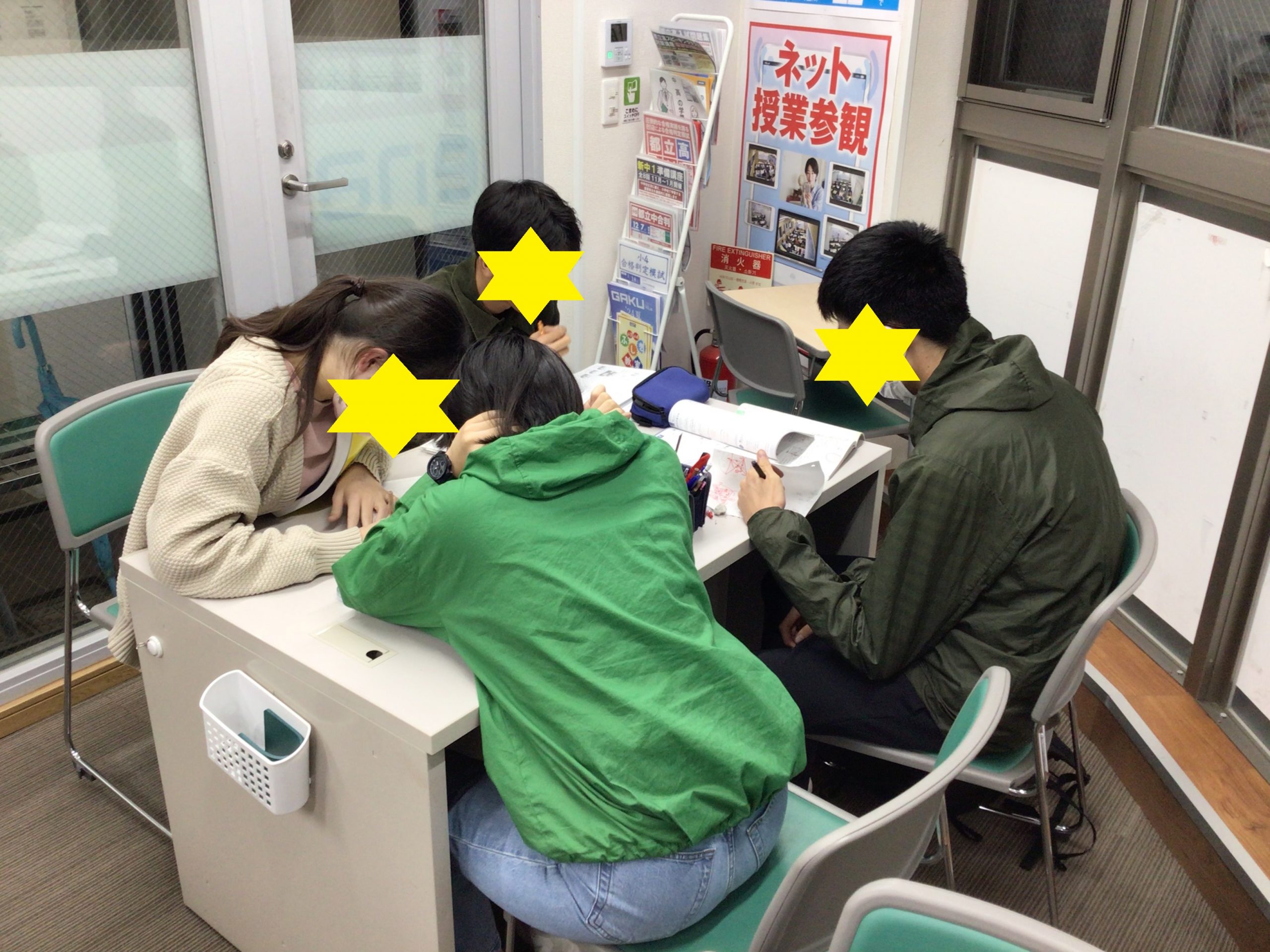 授業後の中3生の様子です。分からない問題を教えあっていました。
