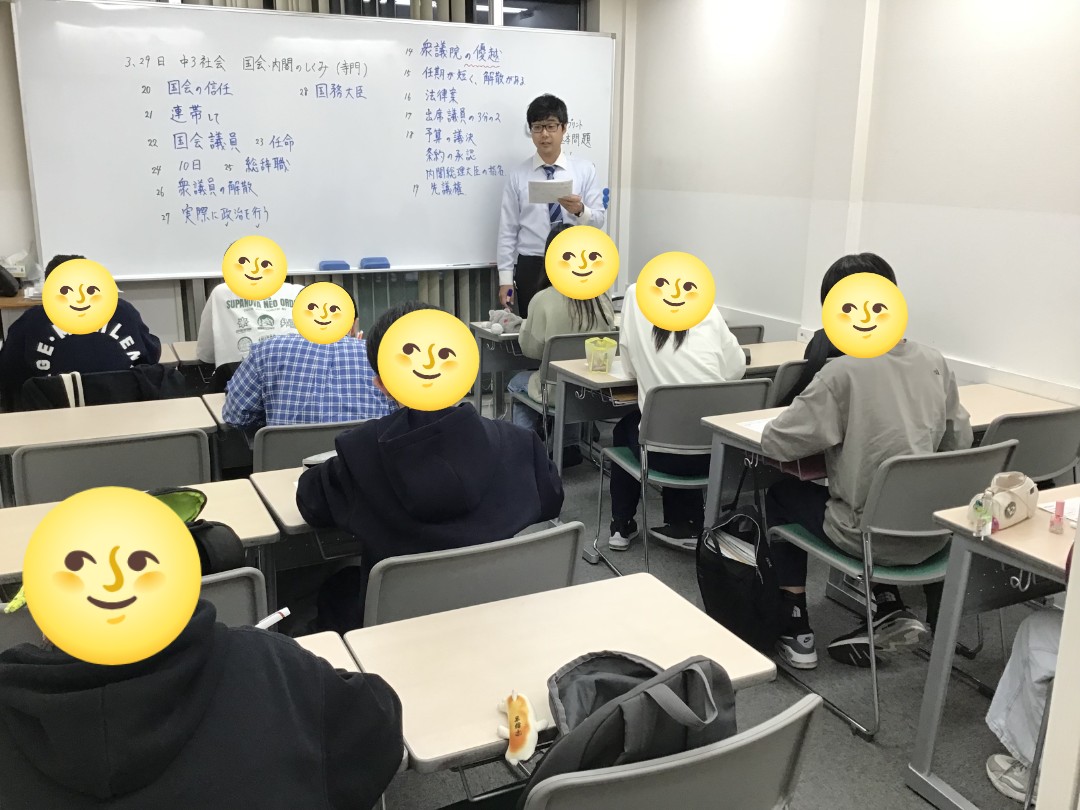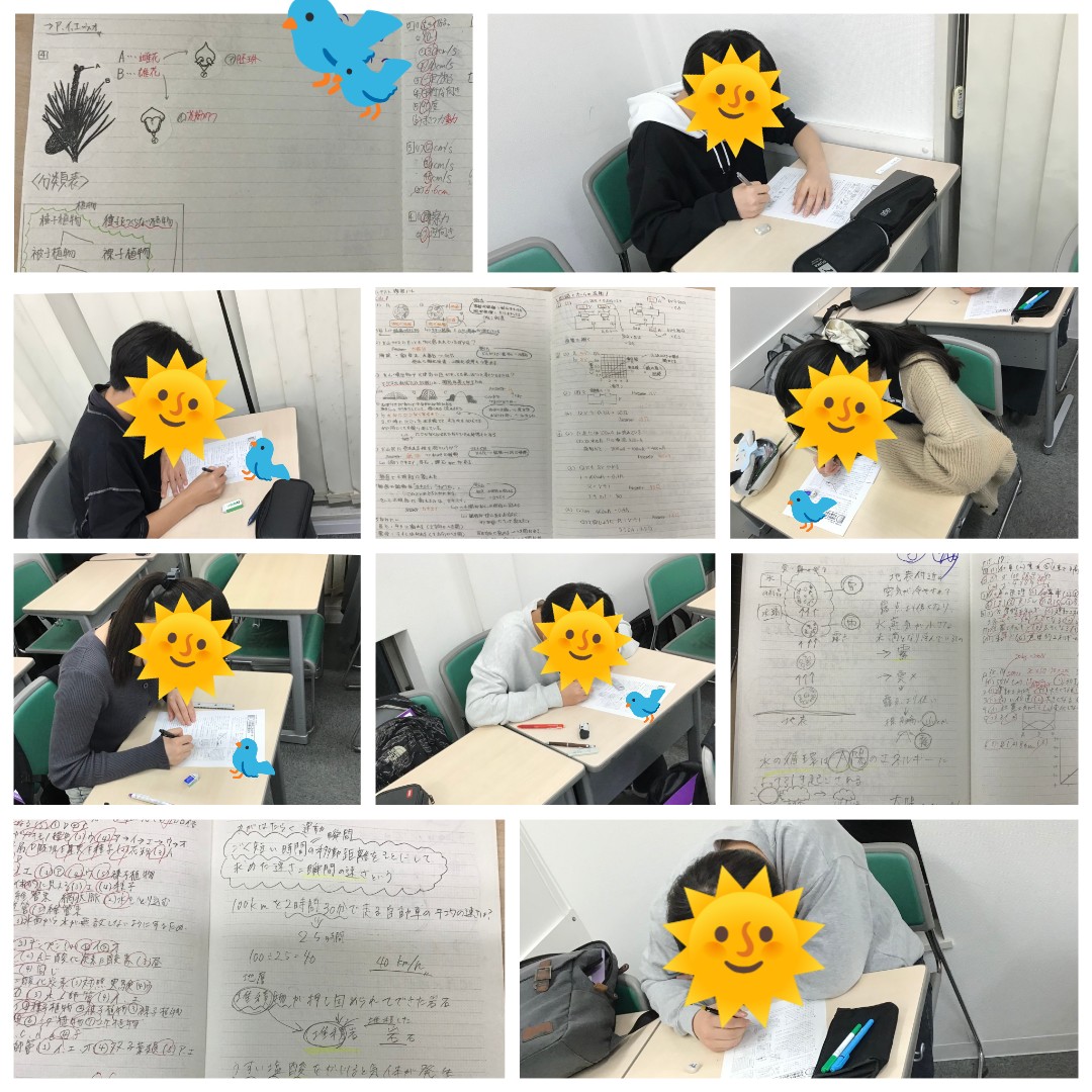 春期講習会4日目最も人数が多い学年新中3の様子です。