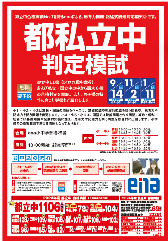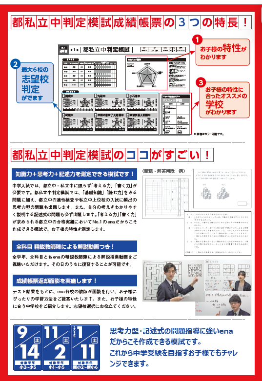 好評をいただいております、「都私立中判定模試」