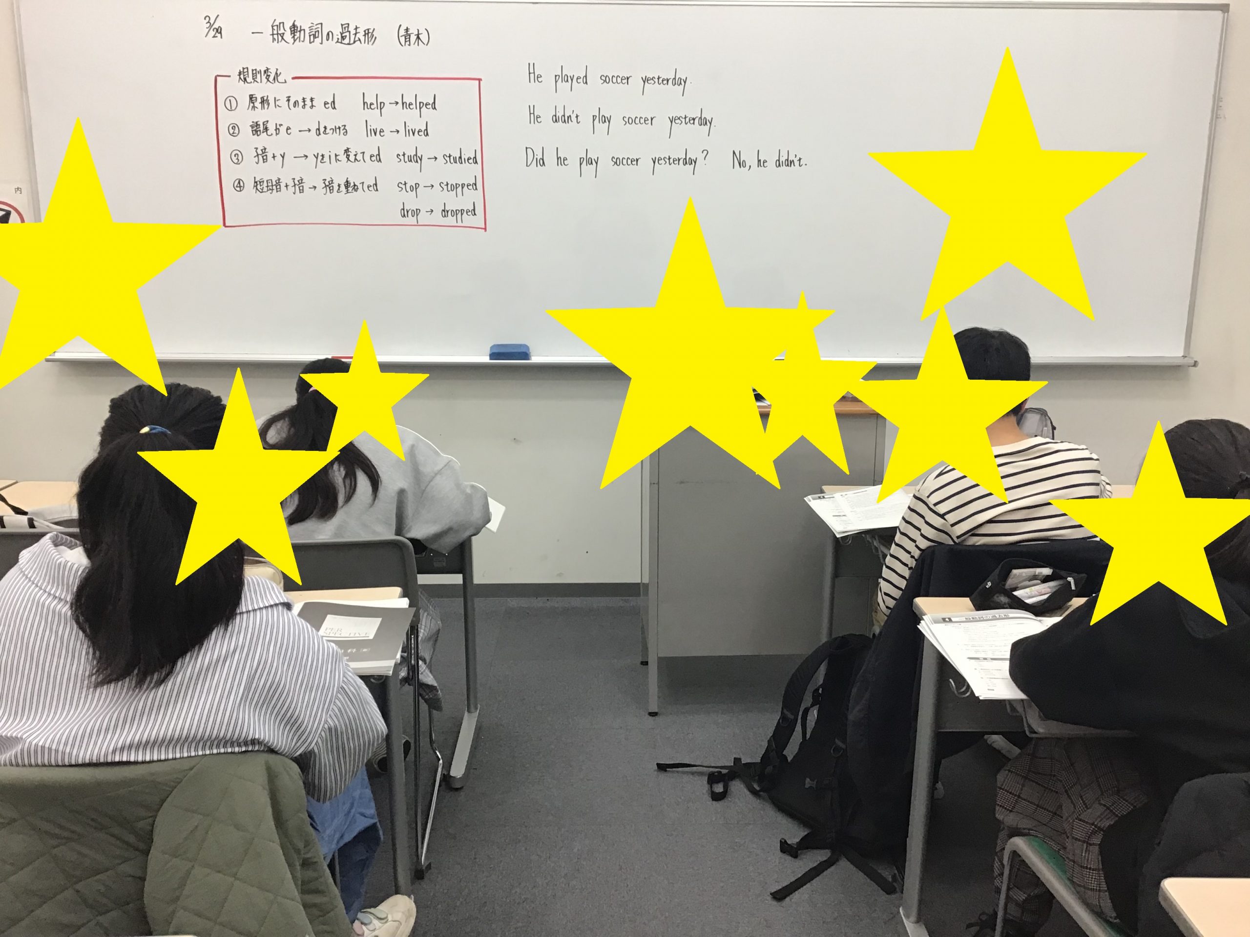 新中2は、一般動詞、be動詞の過去形の授業を行ったため、