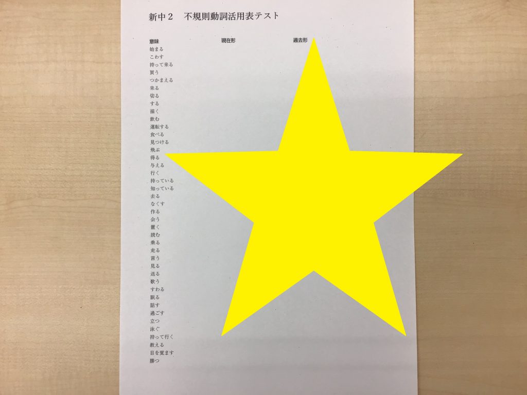 並行して不規則動詞活用表プリントをお渡ししました。