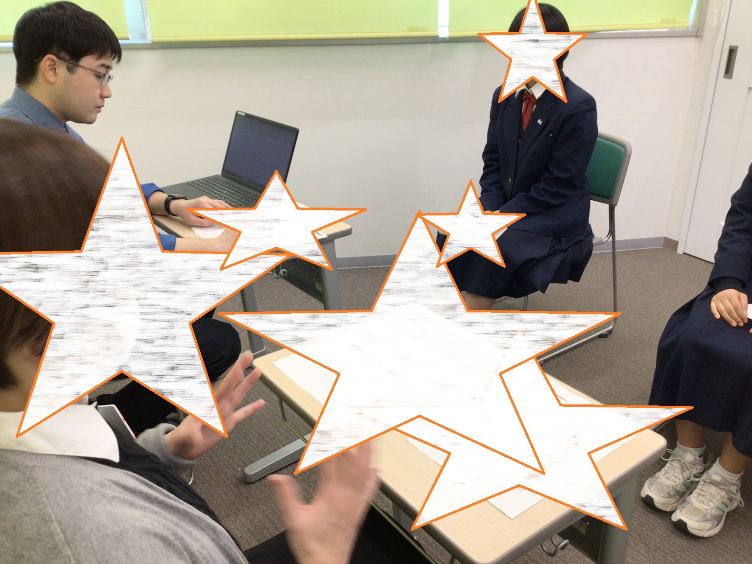 小論文・作文の対策をしつつ、本日は近隣校で集まって面接特訓を行いました。