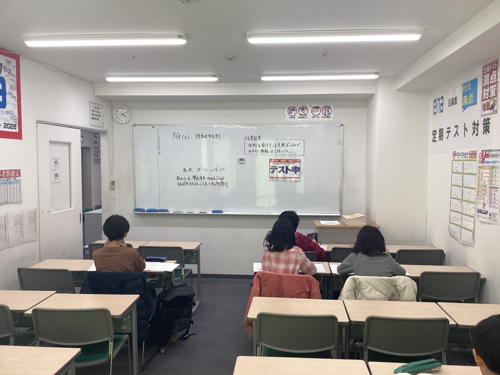 今日は私立中合判を実施しました。本番のテスト形式ということもあり、みんな真剣な表情で問題に向き合っていました。テストの場でも生き生きと取り組む姿を見ると、この一年の成長が今から楽しみになります。