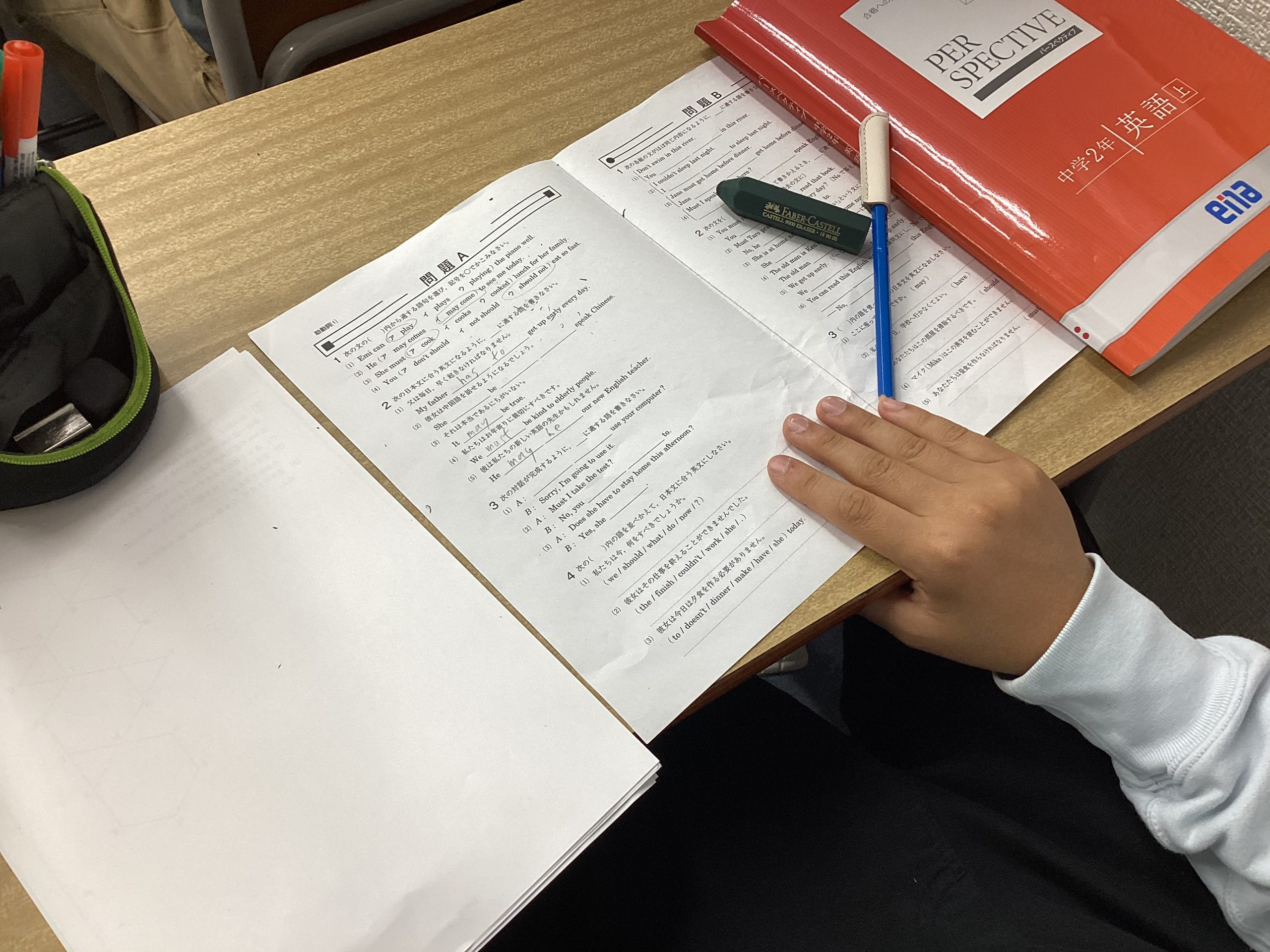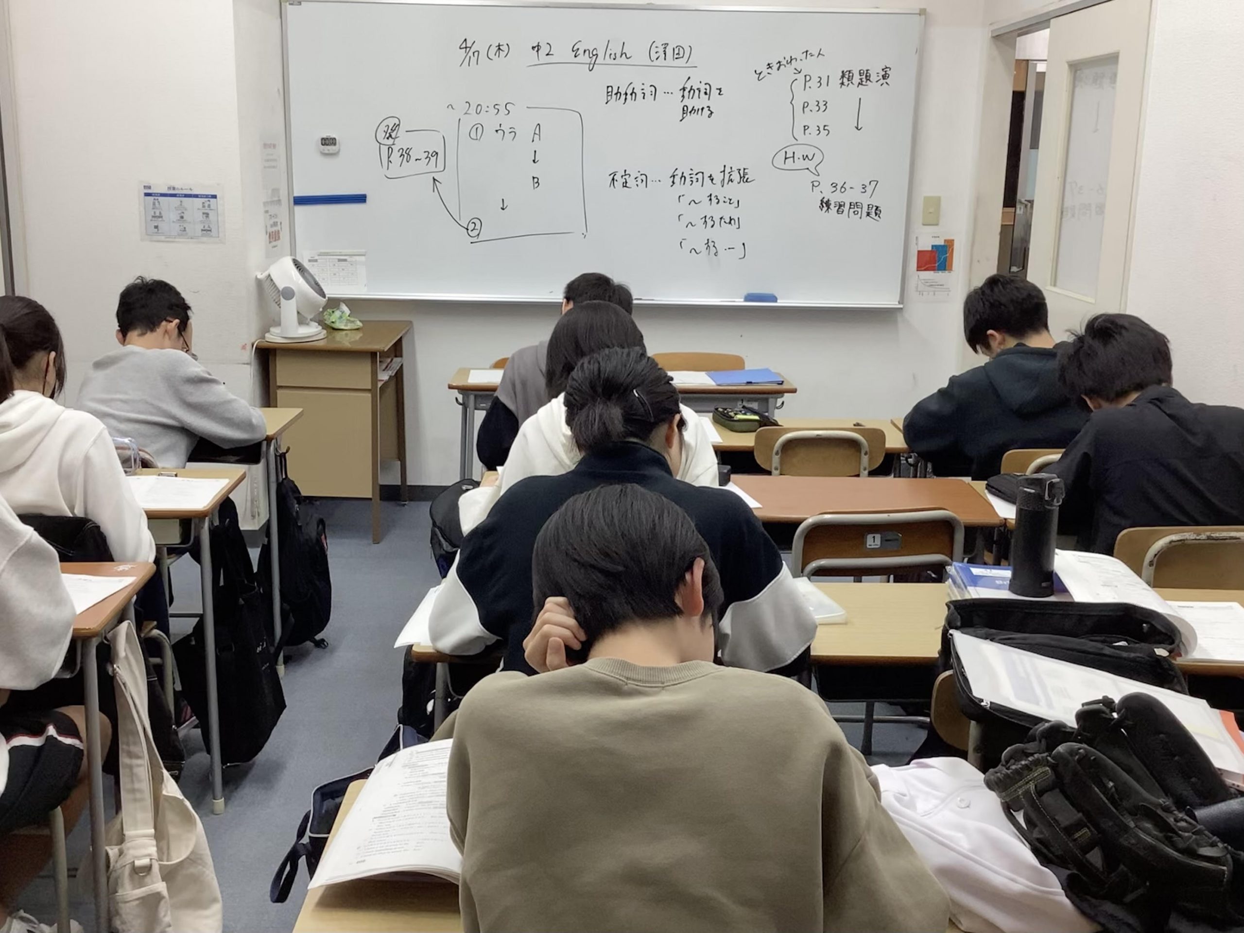本日は小学4年生の4科演習テスト、小学6年生の日々学小テスト、中学2年生の英語文法・単語の小テストなどと盛りだくさん!