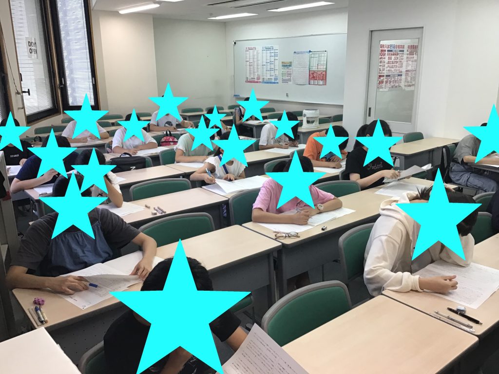 夏期講習会が終わった後の合判で、本番の緊張感に包まれた教室で、小6生は試験に臨んでいました。
