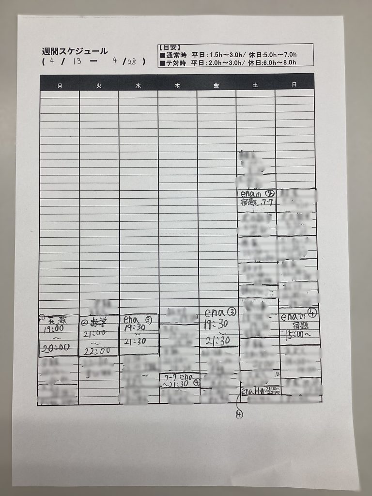 日々の学習習慣を定着させるためのスケジュールを一人ひとりと一緒に作成しました。