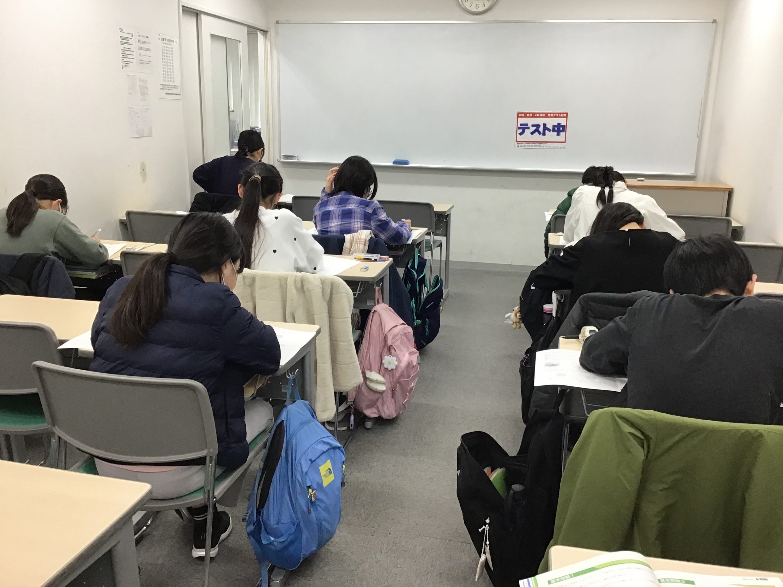 中3たちも負けていません。12時の開校から夜22時近くまで最後の追い込みをかけます。