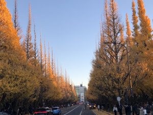 神宮外苑のイチョウ並木もそろそろおしまいになります。
