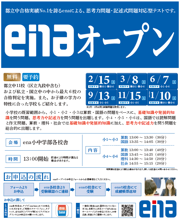 enaでは昨年度、一般生向け無料模試『都私立中判定模試』を実施してまいりました。