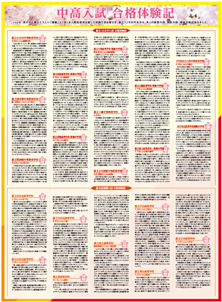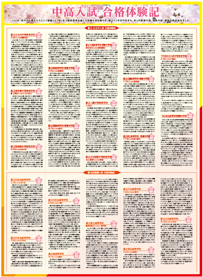 本日、2025年度中学入試の合格実績速報および合格体験記が掲載されたチラシが届きました。