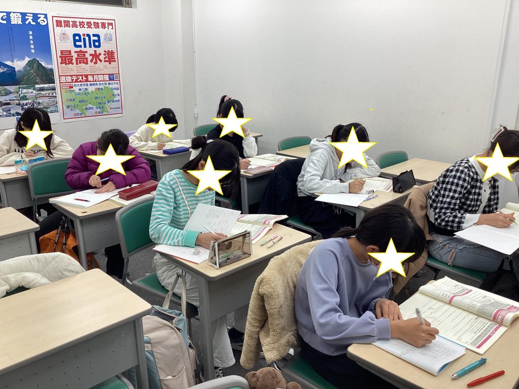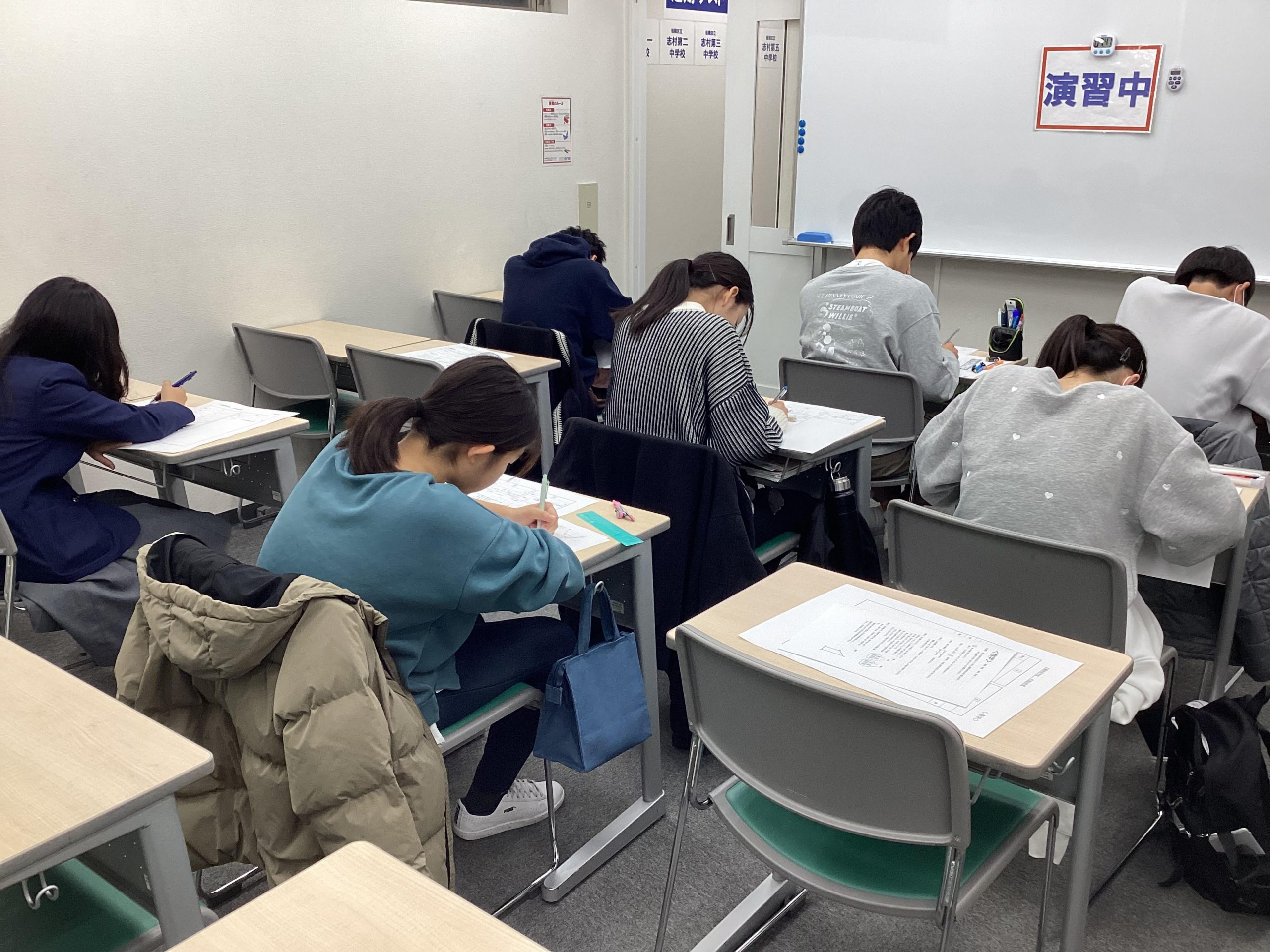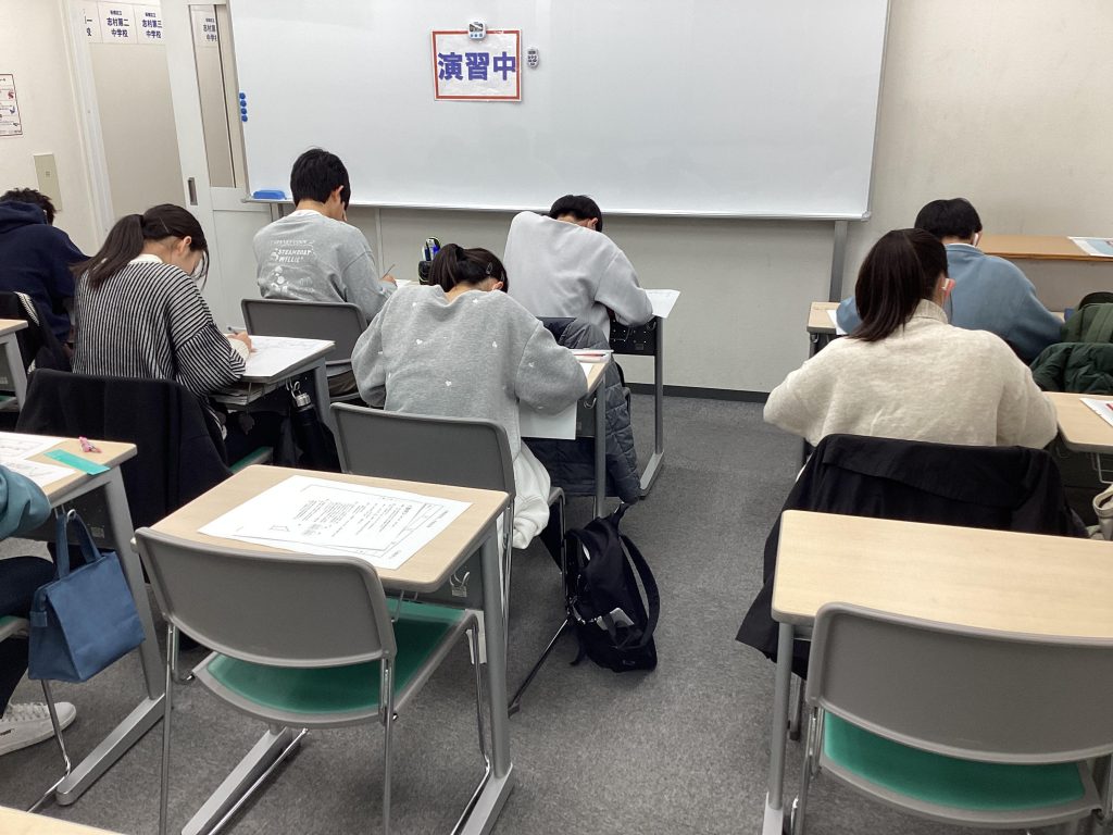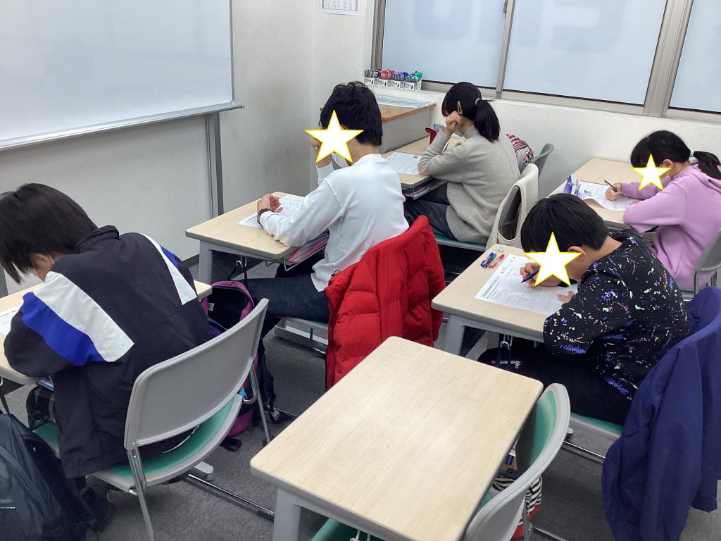 中3生。過去問演習中です。風邪で欠席の方がいます。(皆さん気をつけてください)