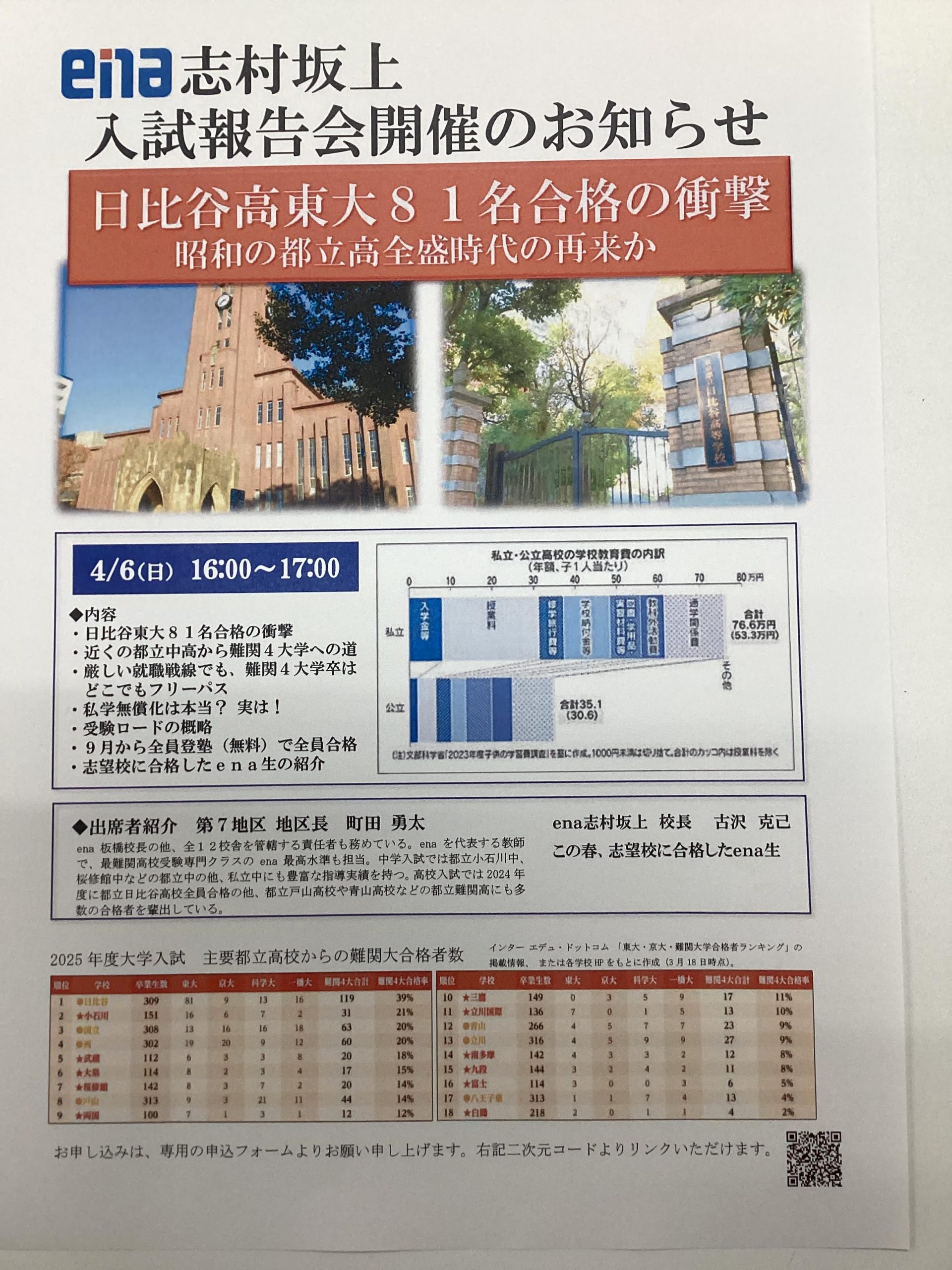 下記の通り、志村坂上校にて「入試報告会」を開催いたします。