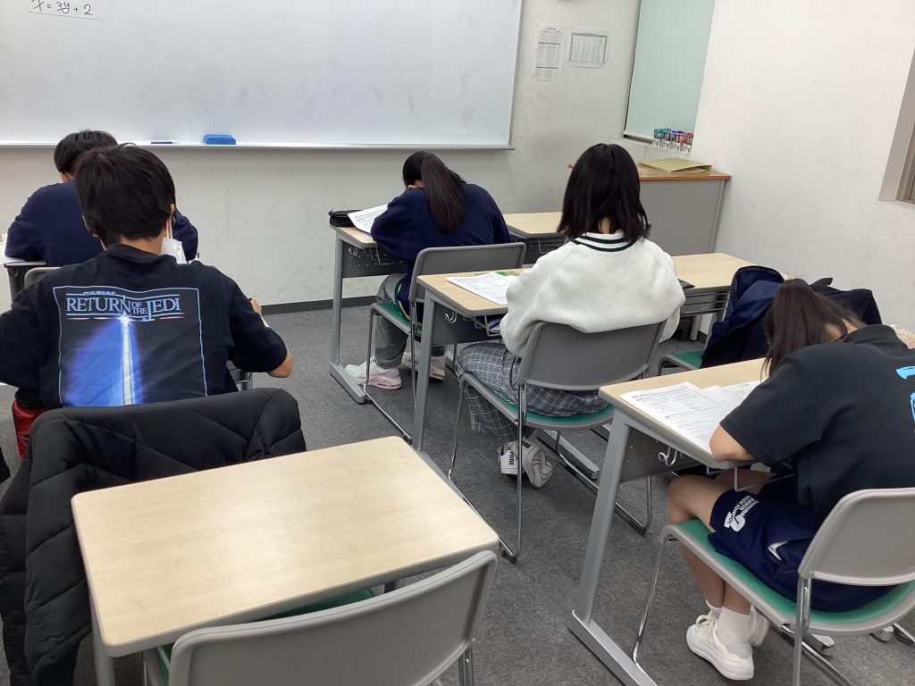 春講の授業、中2生。数学の時間です。次回ブログは春講の様子紹介を予定します。