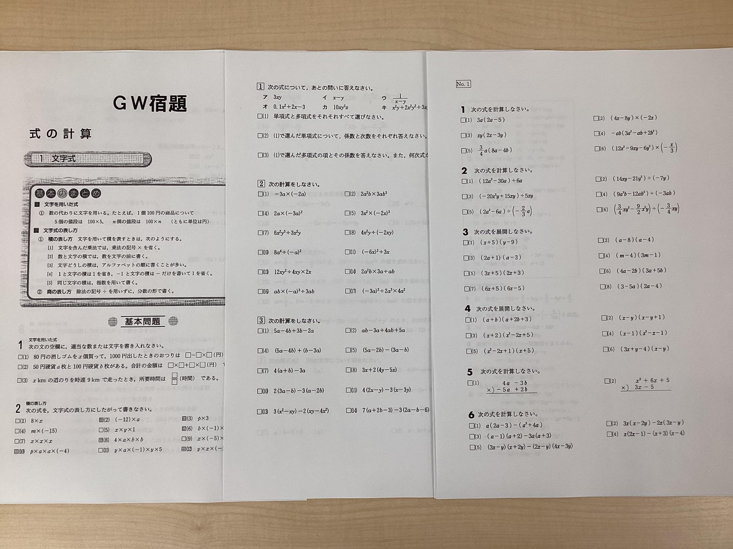 中学生用の数学の宿題
