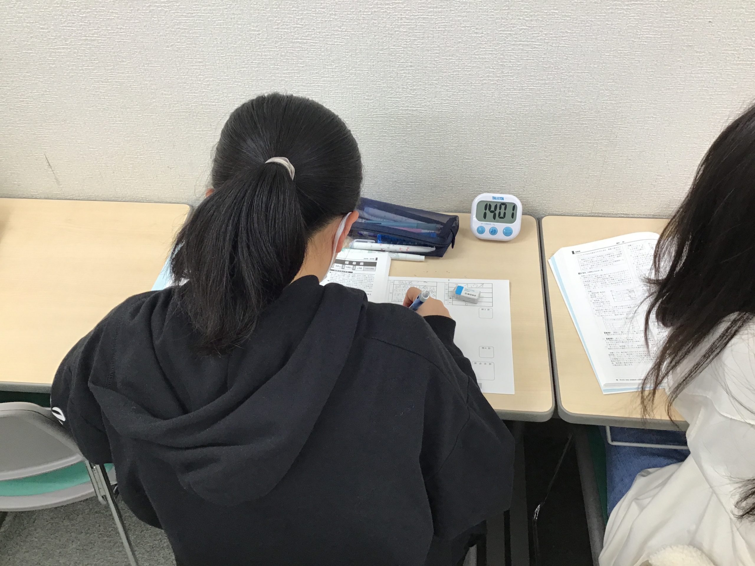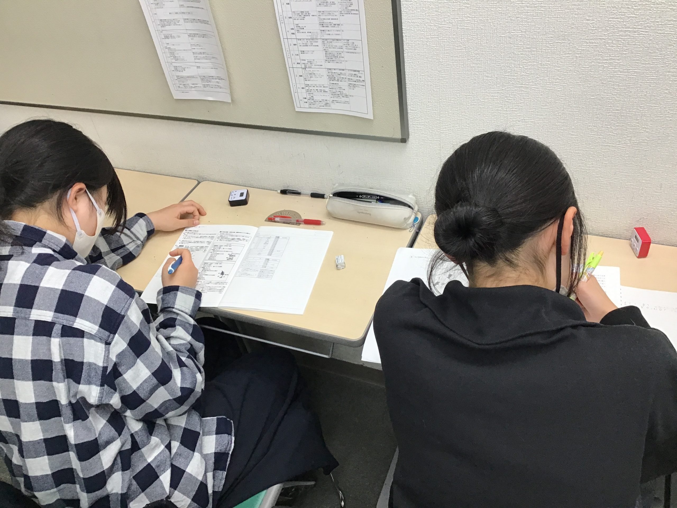 中学3年生は授業の無い火曜と木曜に校舎で理社の過去問演習に取り組んでおります。