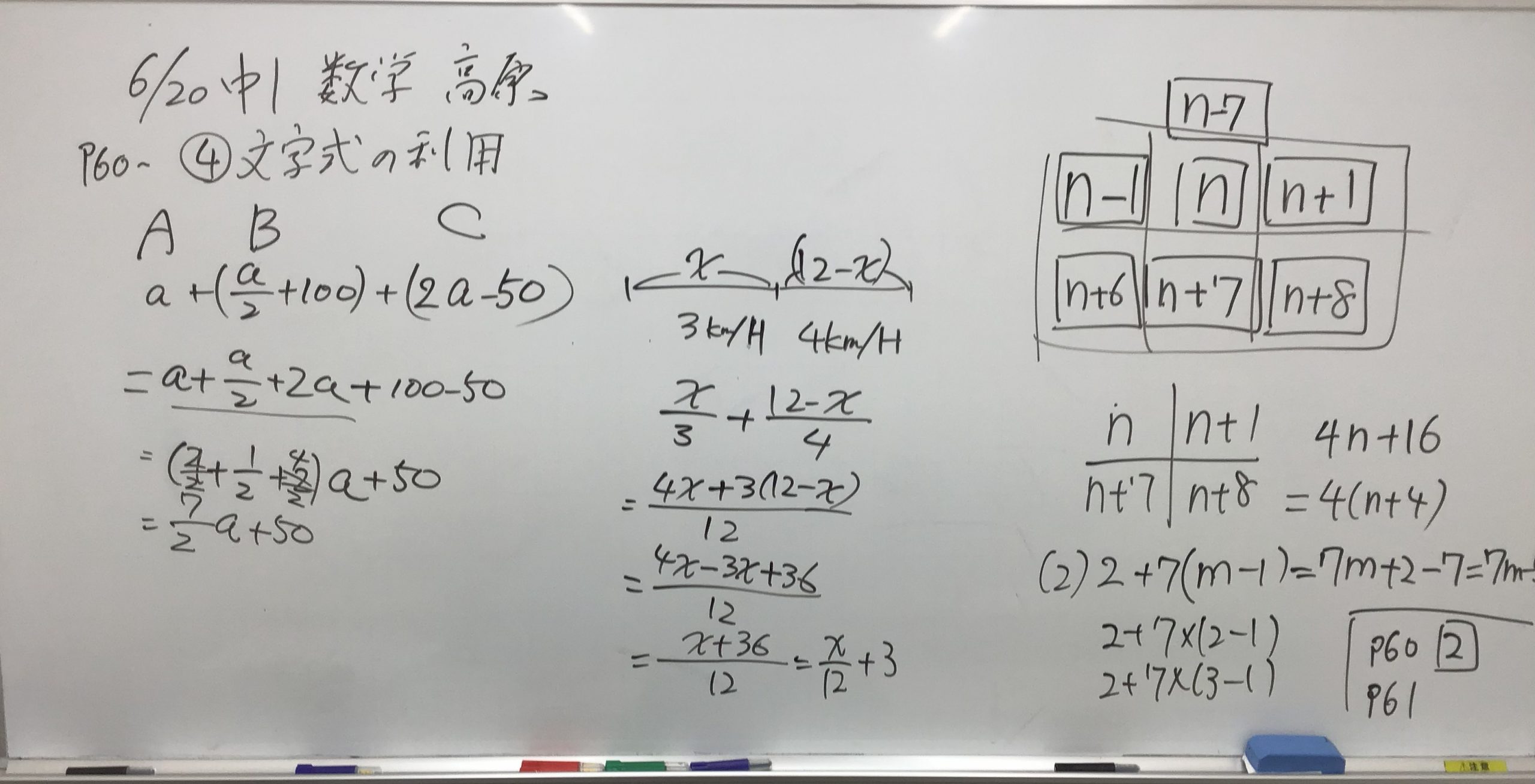 中1数学の授業。文字式の利用です。
