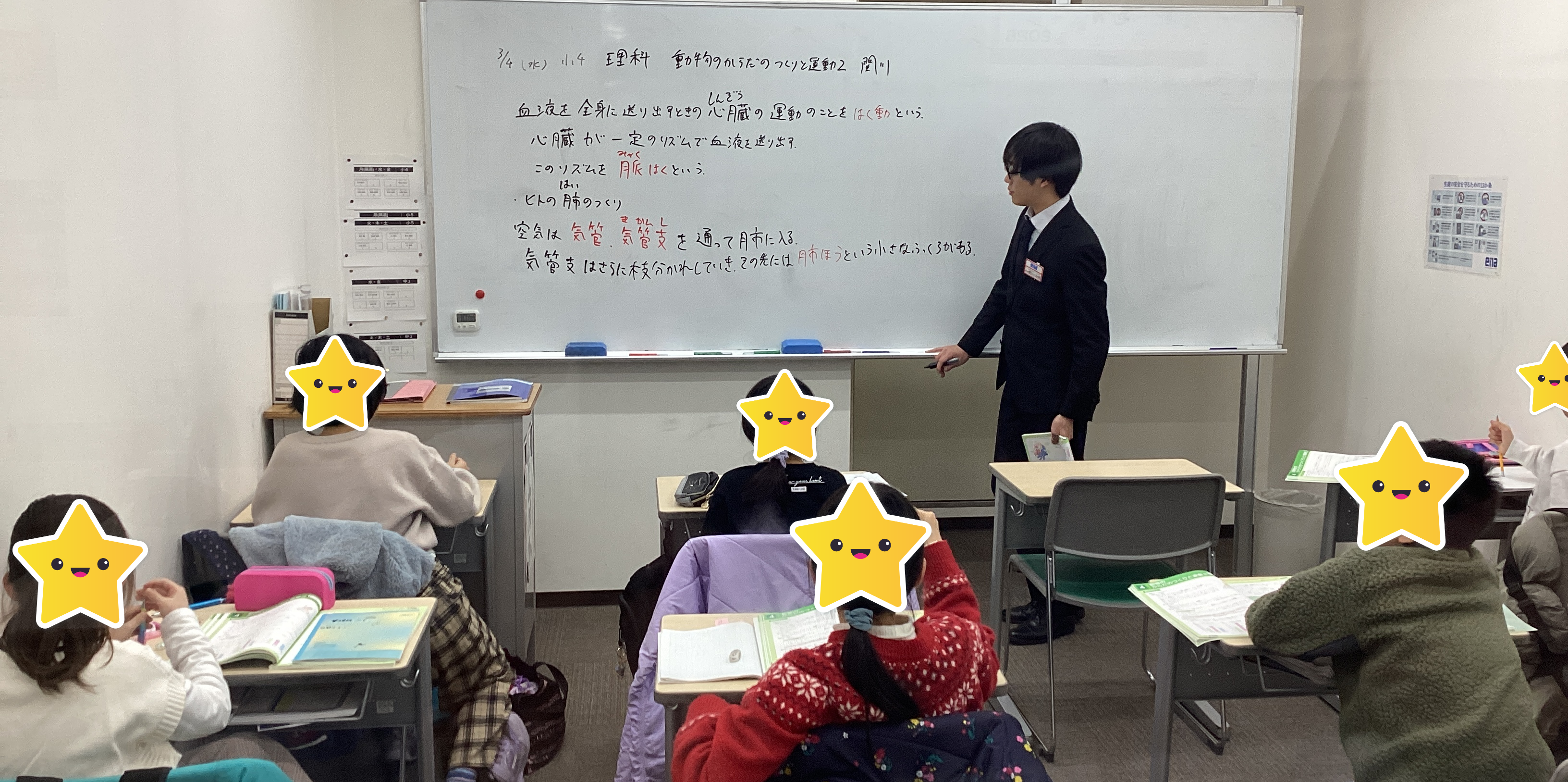 関川先生の理科の授業。ツボを押さえた授業と、次々と上がる質問に的確に、丁寧に答える先生の授業に、新小4の生徒たちも盛り上がりました。