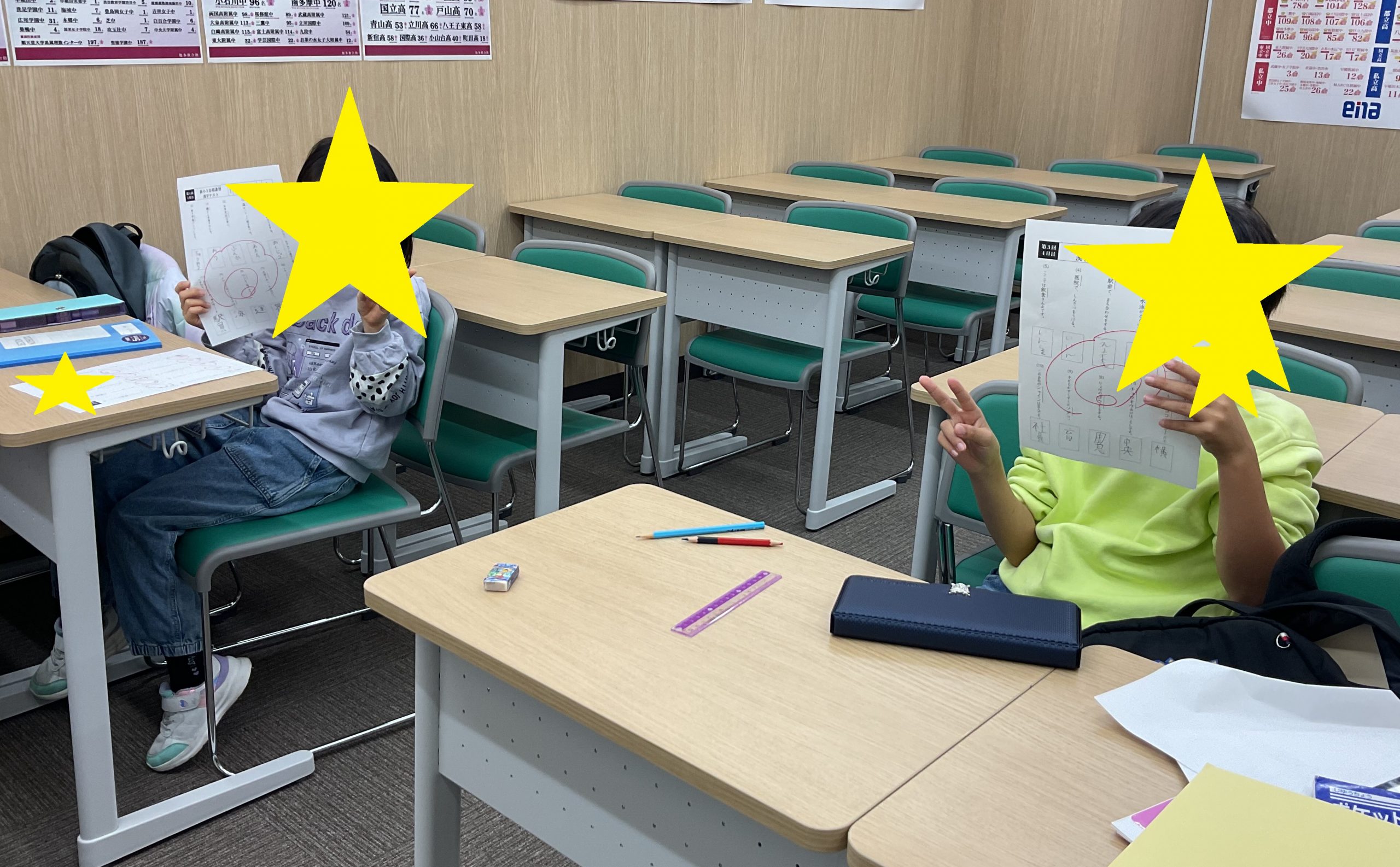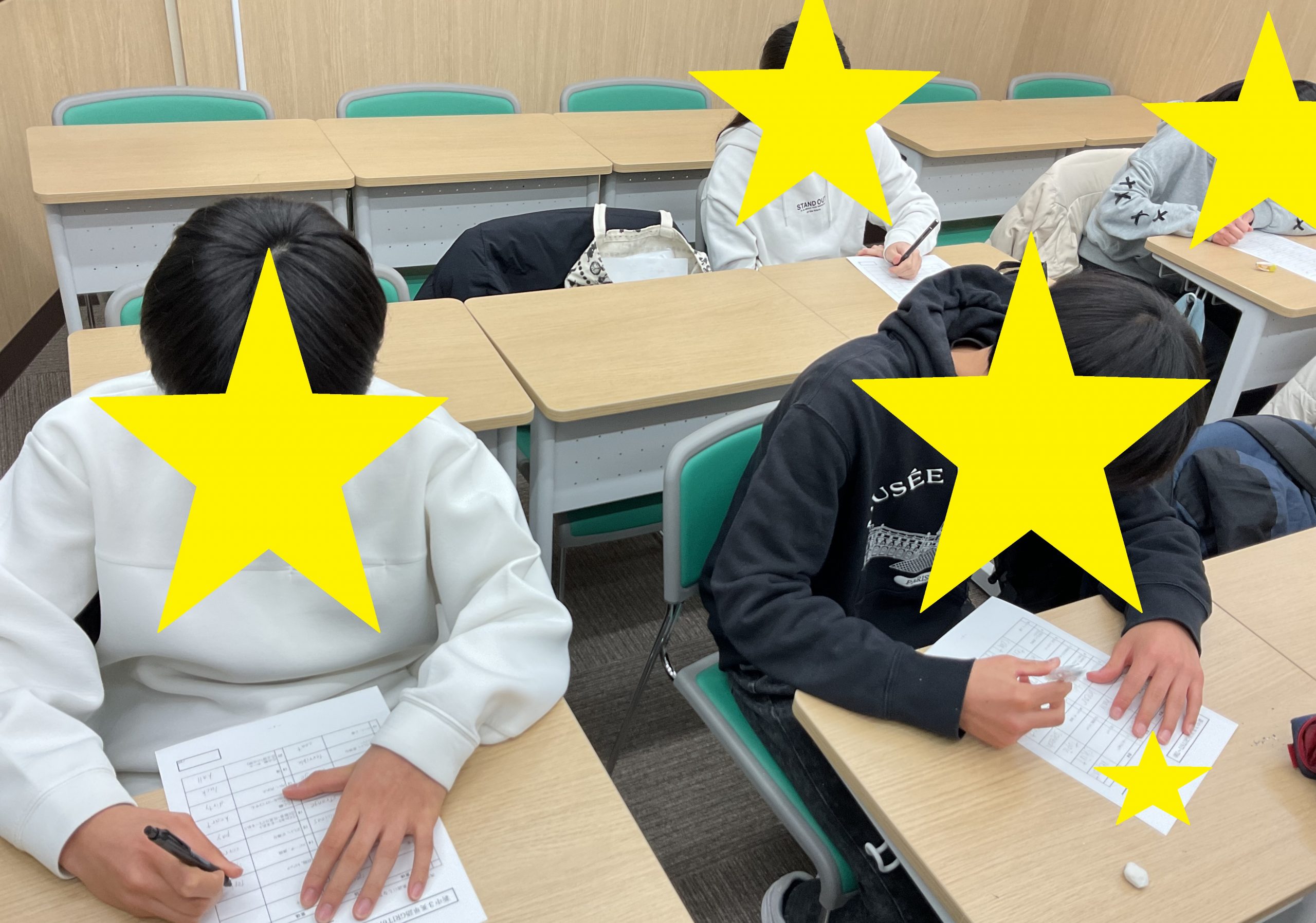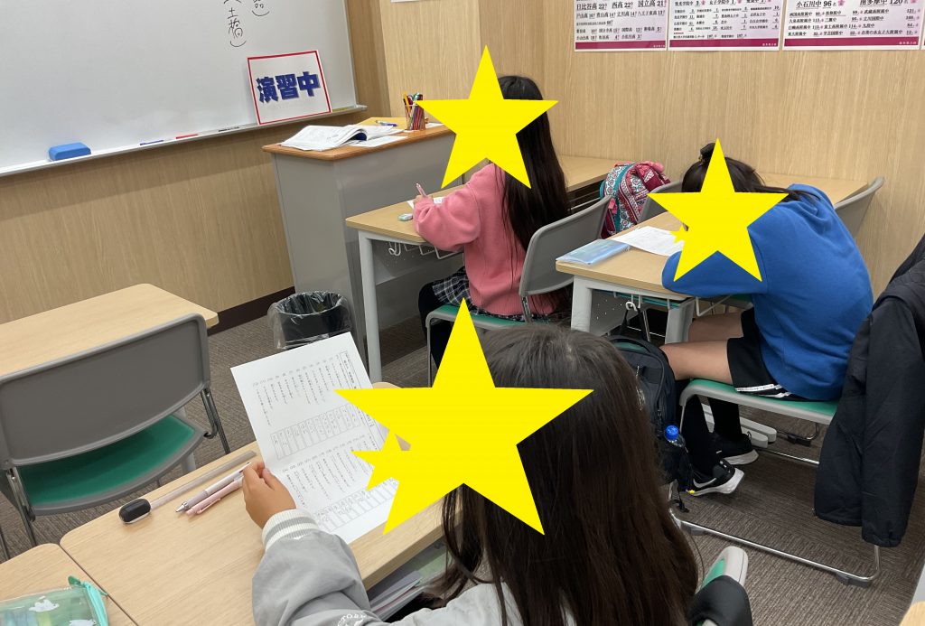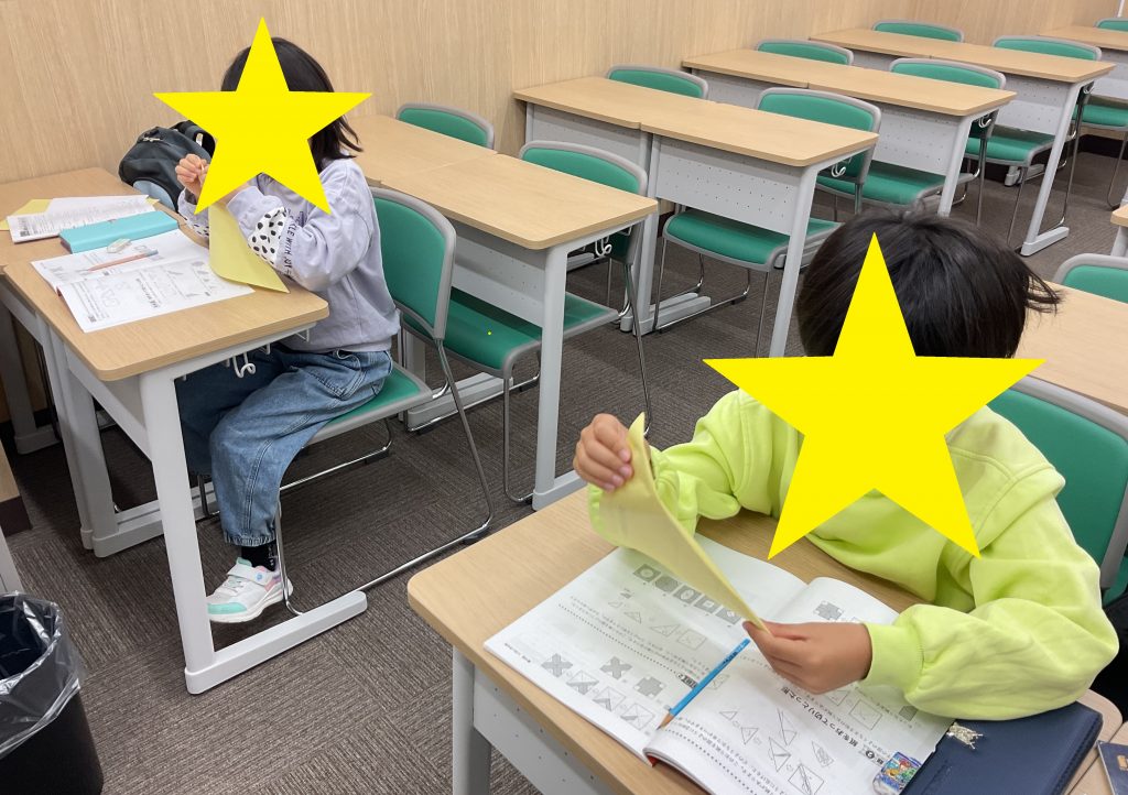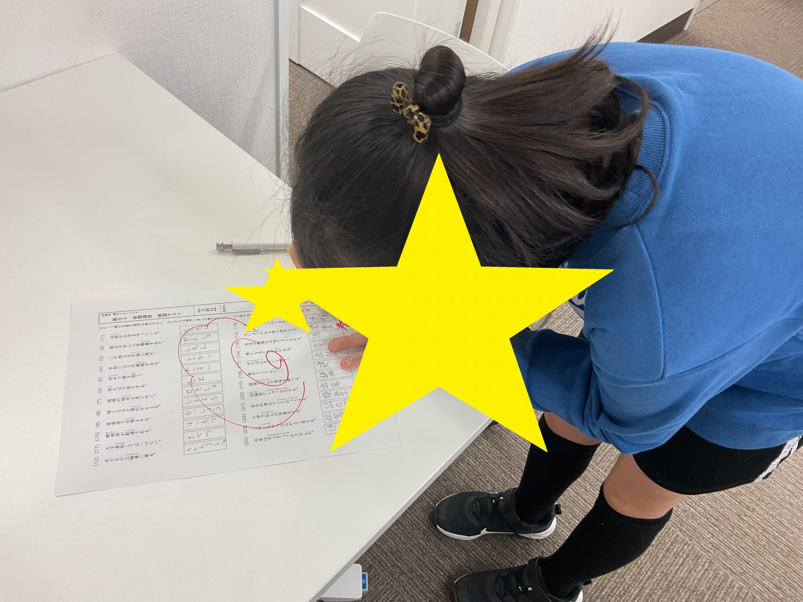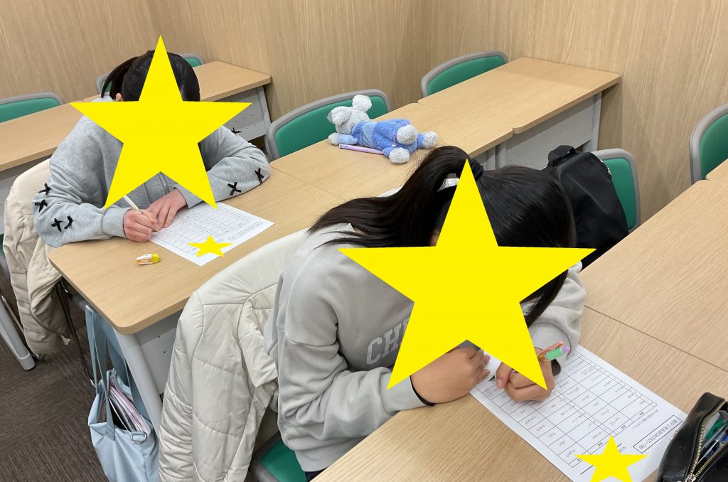 授業前に漢字の再テストを受けに来ました!