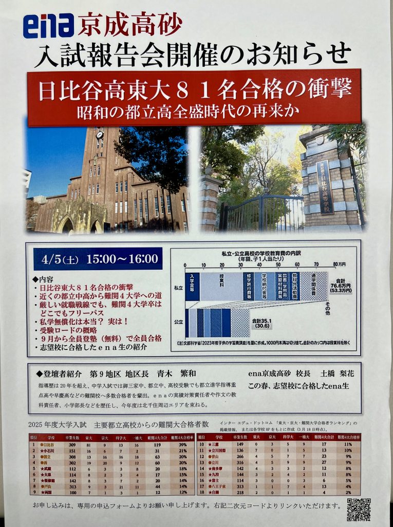 ena京成高砂にて、入試報告会を行います!