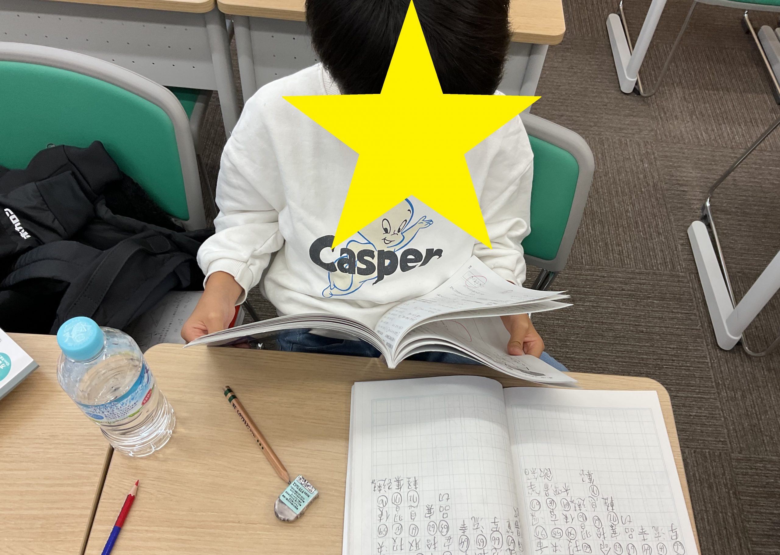 算数の学判範囲の練習・発展問題を1時間解いた後、国語の漢字・文法チェック!