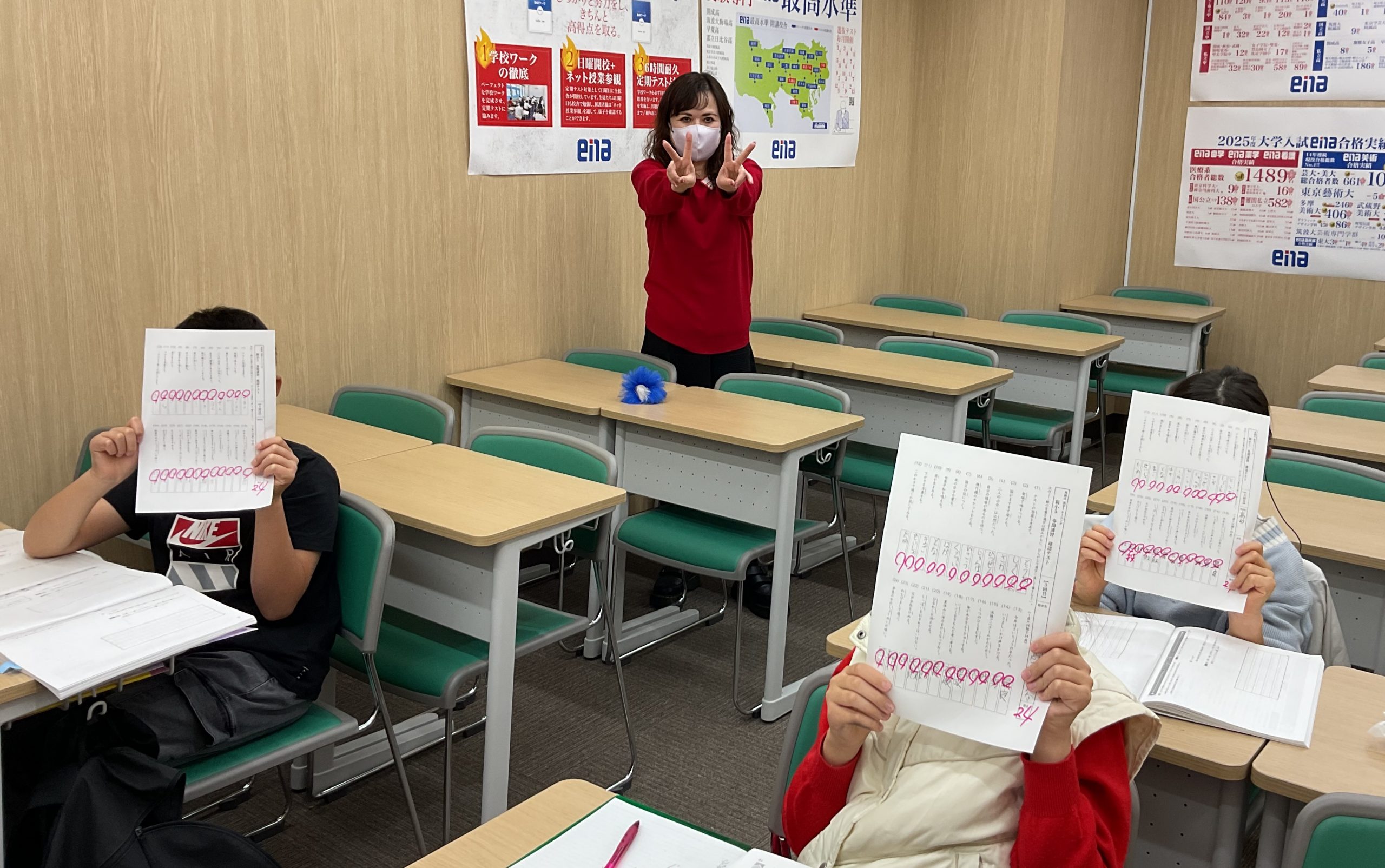 授業前に毎日恒例社会の小テストを実施!授業後に必ず再テストまで行い最後まで追いかけます!