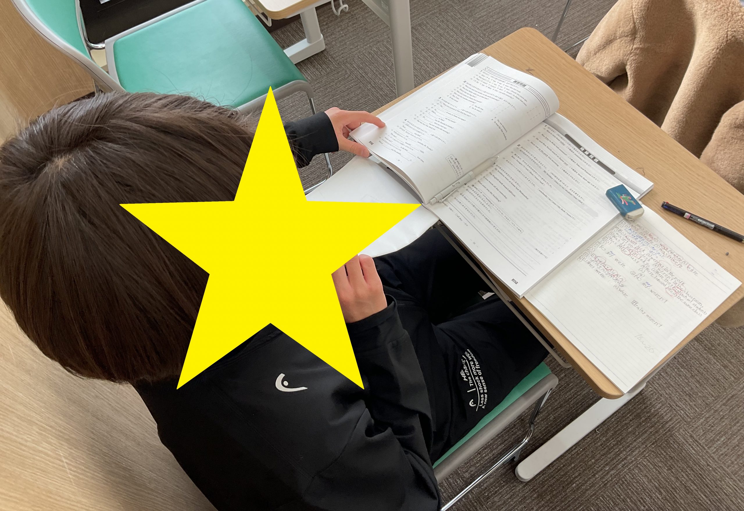 授業前には自習に来て、宿題・再テスト+1年の英語の復習までこなします!