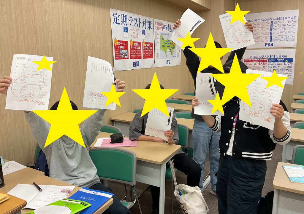 授業の最後には、満点を取れたテストをもって集合写真!