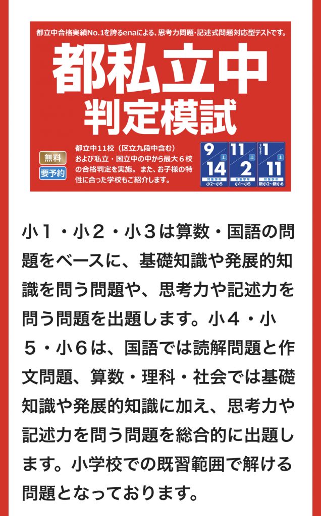 適性検査模試は都私立中判定模試に生まれ変わります!