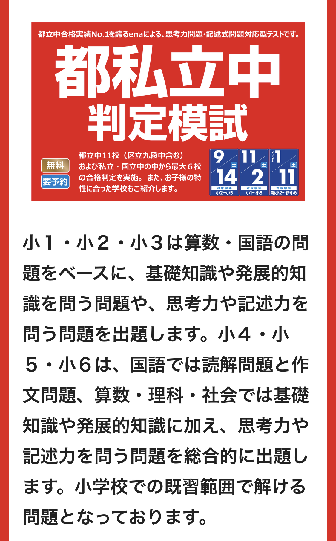9/14(土)に都私立中判定模試を受検して確かめませんか。