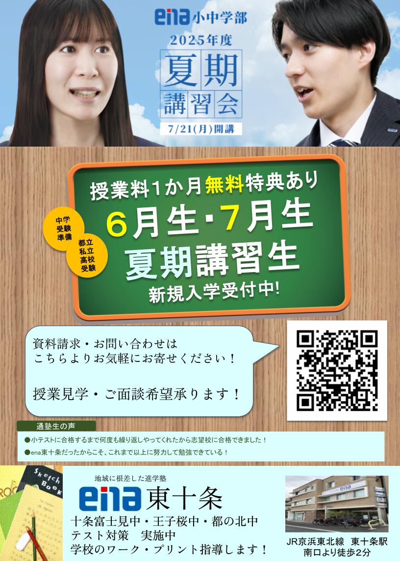 ena東十条は、「地域に根差した進学塾」として、地域の皆さんの学びを応援しています。