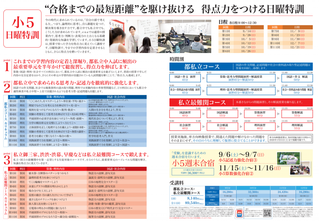 【ena東十条】小5生集まれ!小5日曜特訓(対面)のご案内