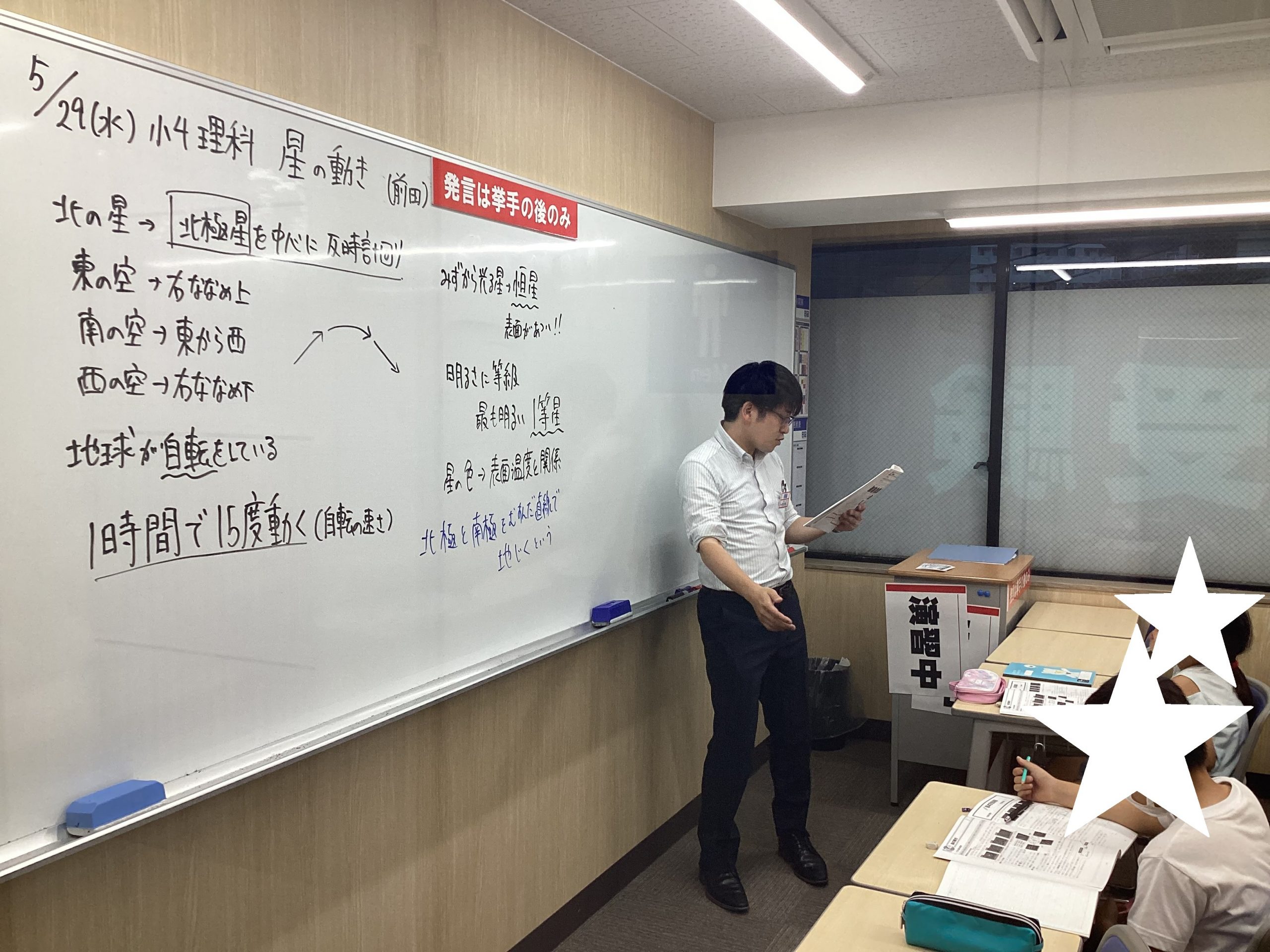 星の動き」の授業のようです。