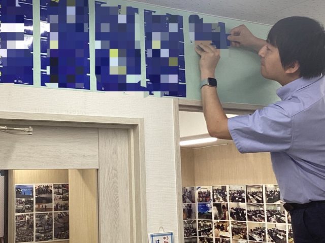 中学部の定期試験が終了し、校舎では優秀賞の掲示づくり。