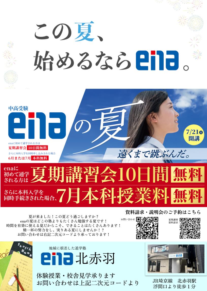 私たちena北赤羽は、この夏だけではなく受験までしっかり力をつけて行くカリキュラムをご用意しております。
