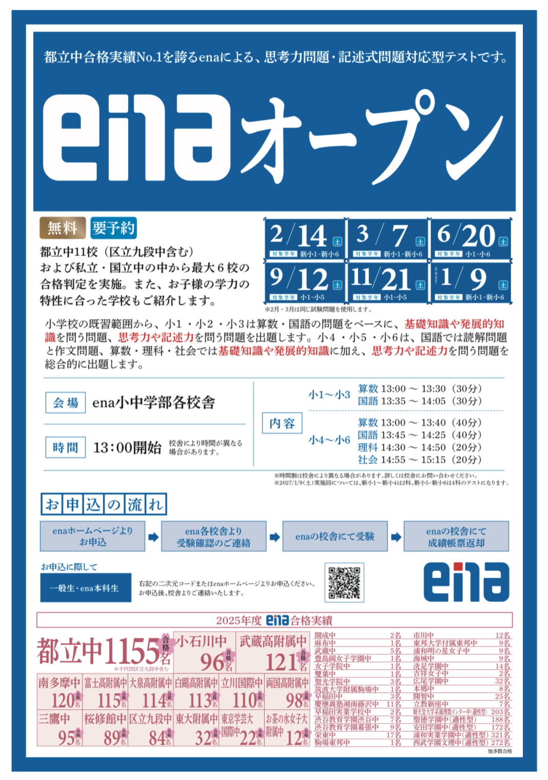 ena北赤羽では、小中学部とも各学年に向けた模試・テストをを展開いたしております。
