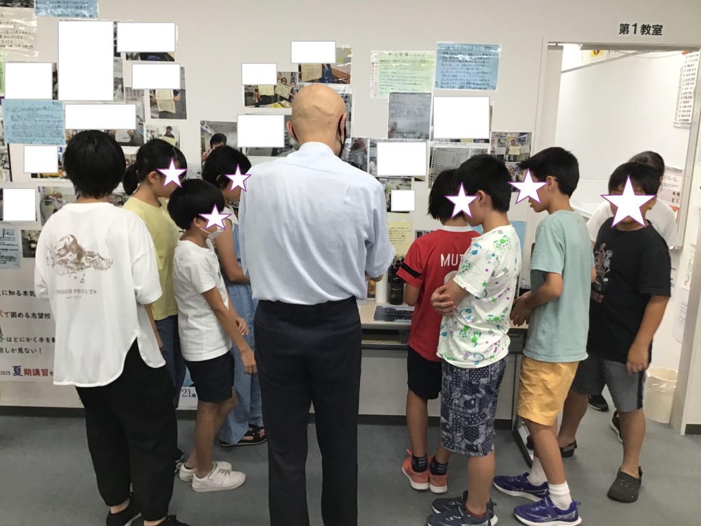 夏期講習3期の最終日8月6日㈬、広島原爆の日でしたね。広島に原爆が投下されてから、今日で80年です。それぞれの学年で伝わるように、戦争についての話をさせていただきました。無くならない核兵器、負の連鎖、戦争。一人ひとりが自分にできることを考えていくこと、今いる環境がどれだけ恵まれているのかなど、少しでも立ち止まって考えるきっかけになればと思います。