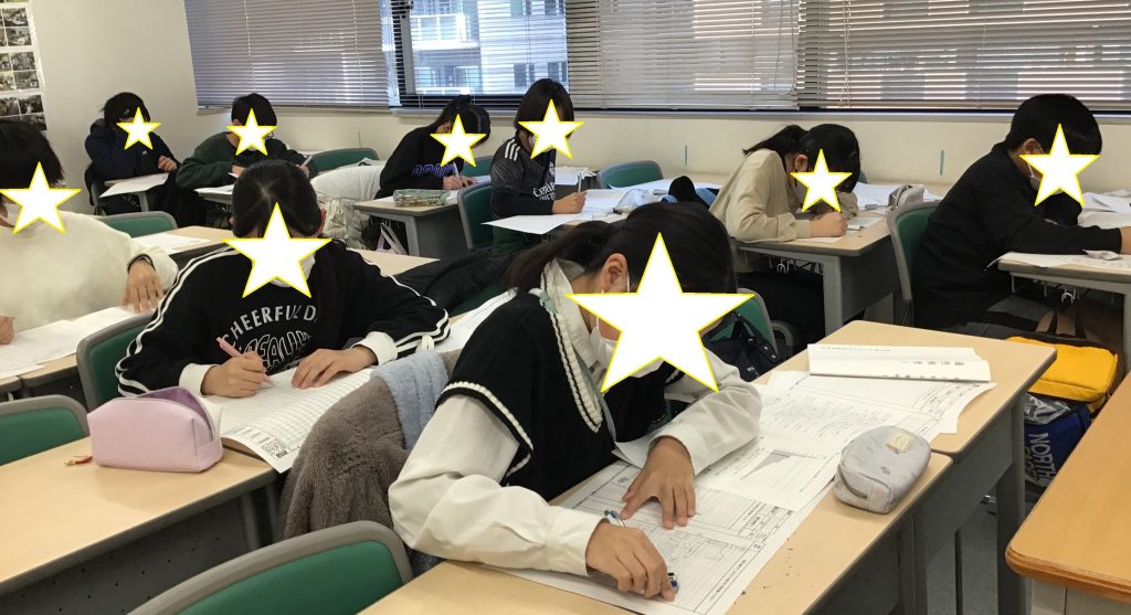 生徒たちは各々全身全霊で入試に臨んだ後、校舎にて答案再現を行いました。
