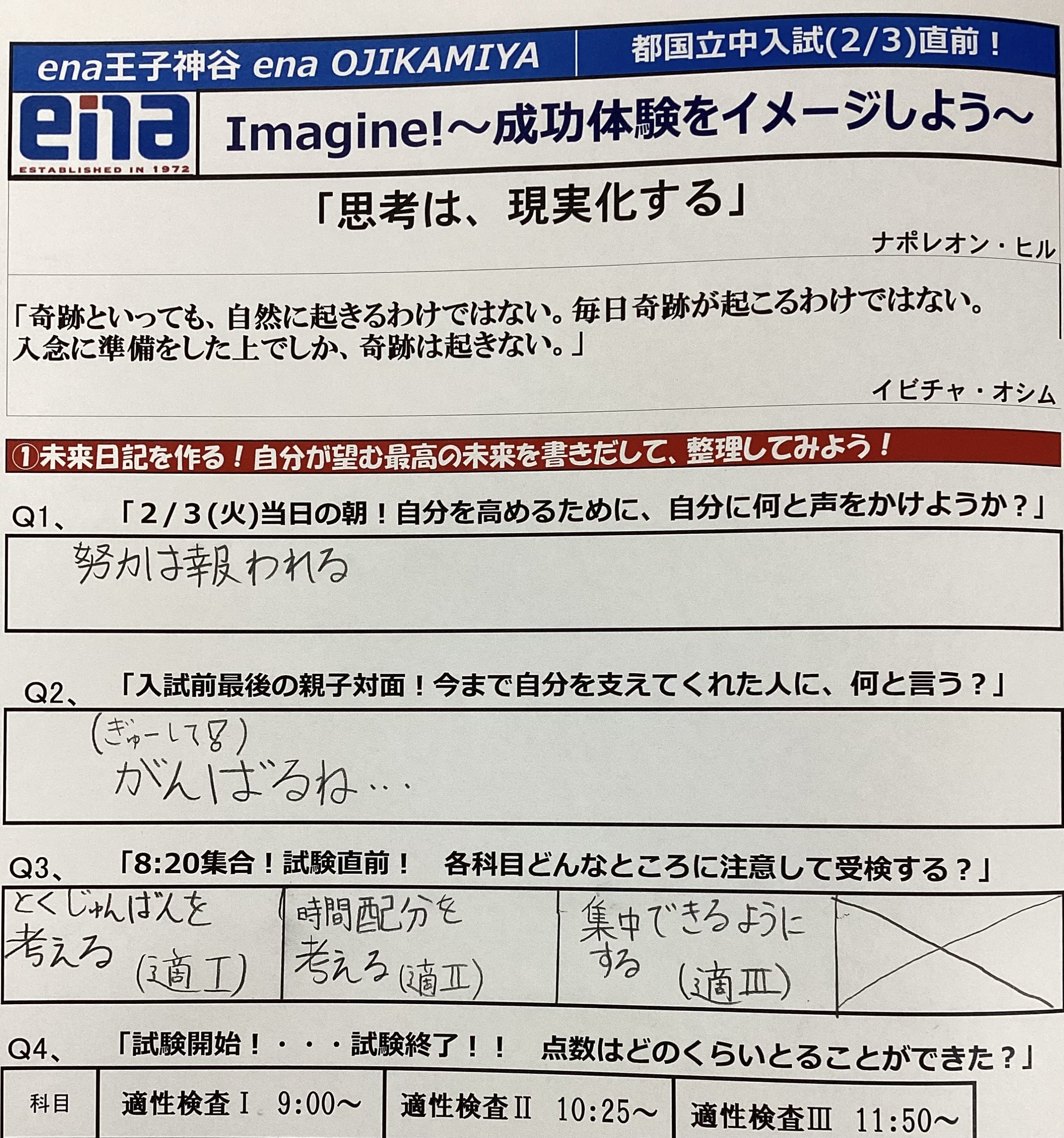 ena王子神谷の第2期生が、持てる力のすべてを答案用紙にぶつけてきました。