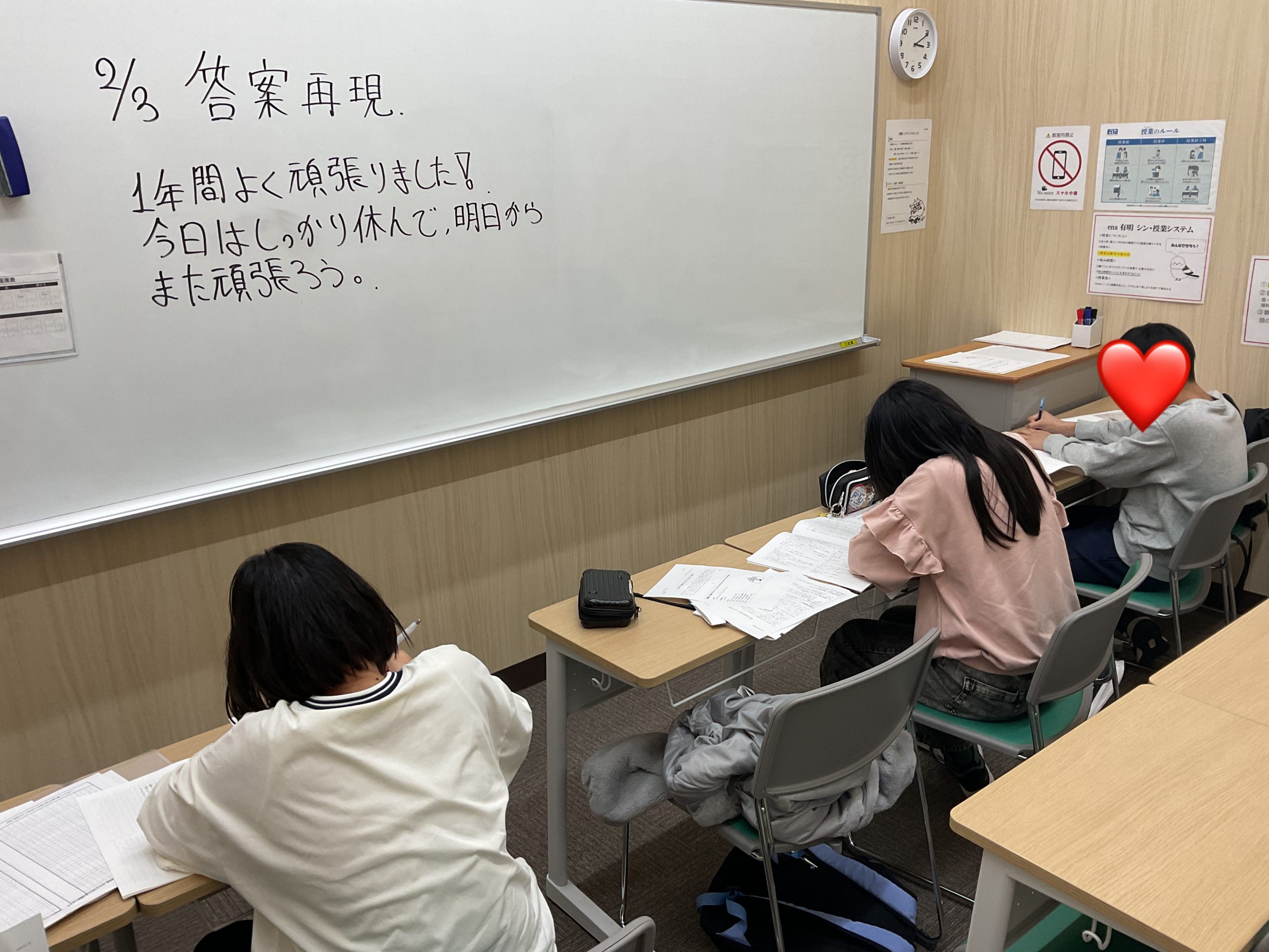 今朝から「今は適Iの時間かな」「休憩中かな」「そろそろ学校を出たのかな」などと私自身もソワソワしつつ生徒の帰りを待っておりました。