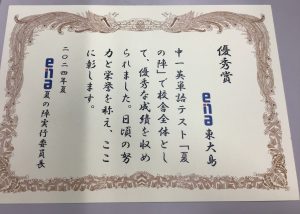 賞状も頂きました。本当にみんなよく頑張りました。