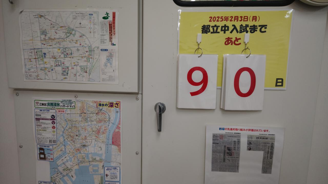 亀戸より「都立中入試まであと90日」