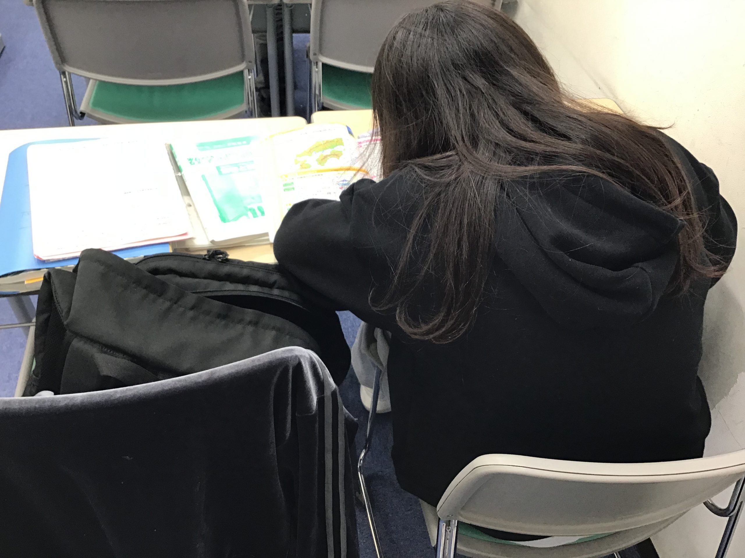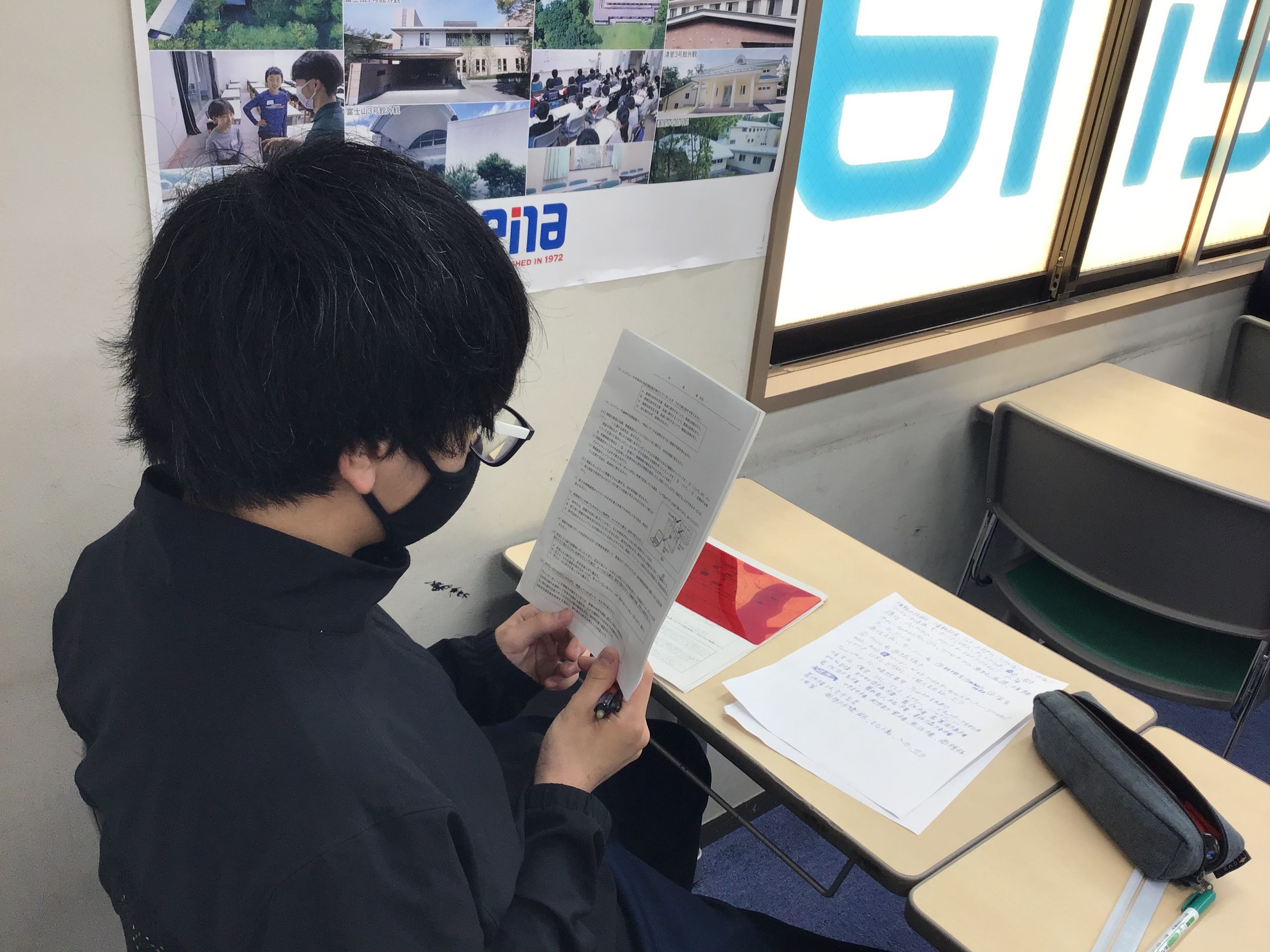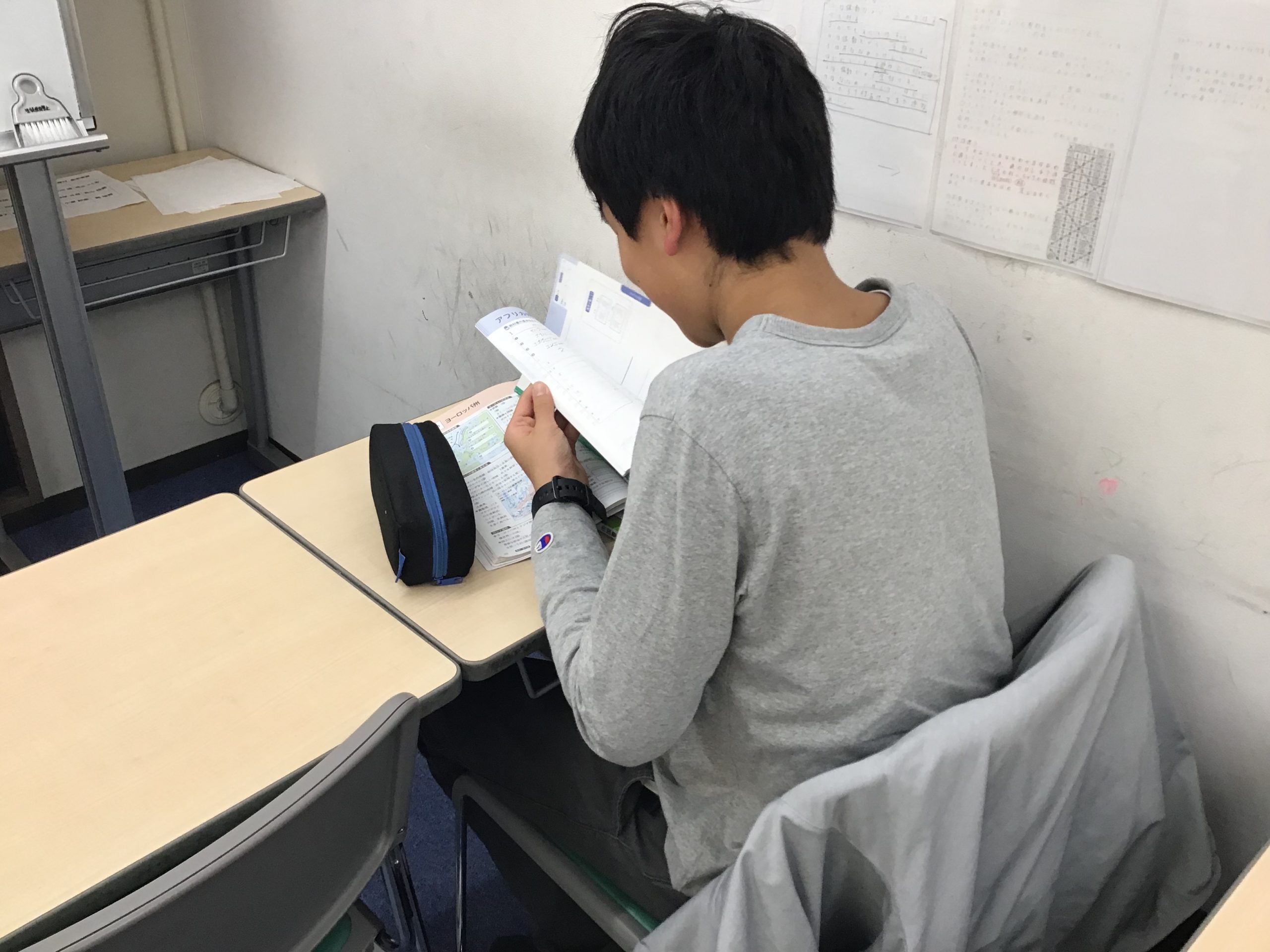 本日もテスト日なので、学校が終わり一息ついたら教室に来て、それぞれの翌日のテストに向けた学習に励んでいます。