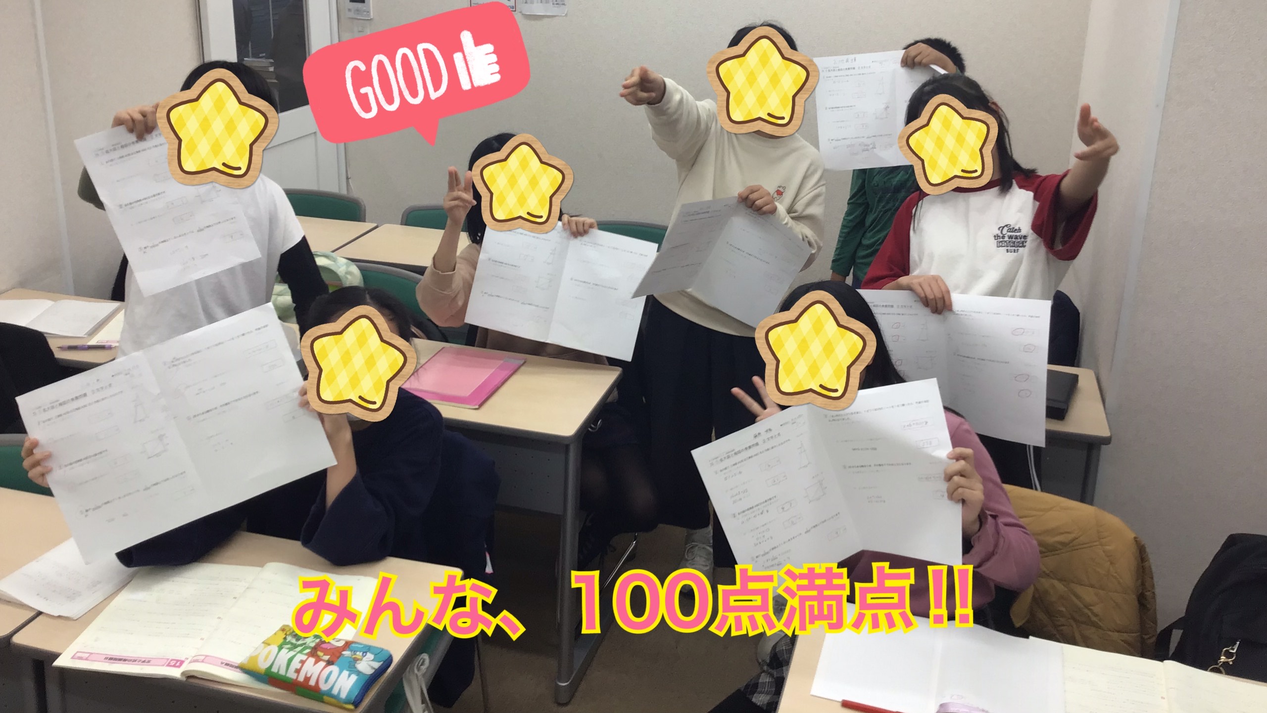 こちらはあるクラスで、小テストで全員が満点取った写真です。