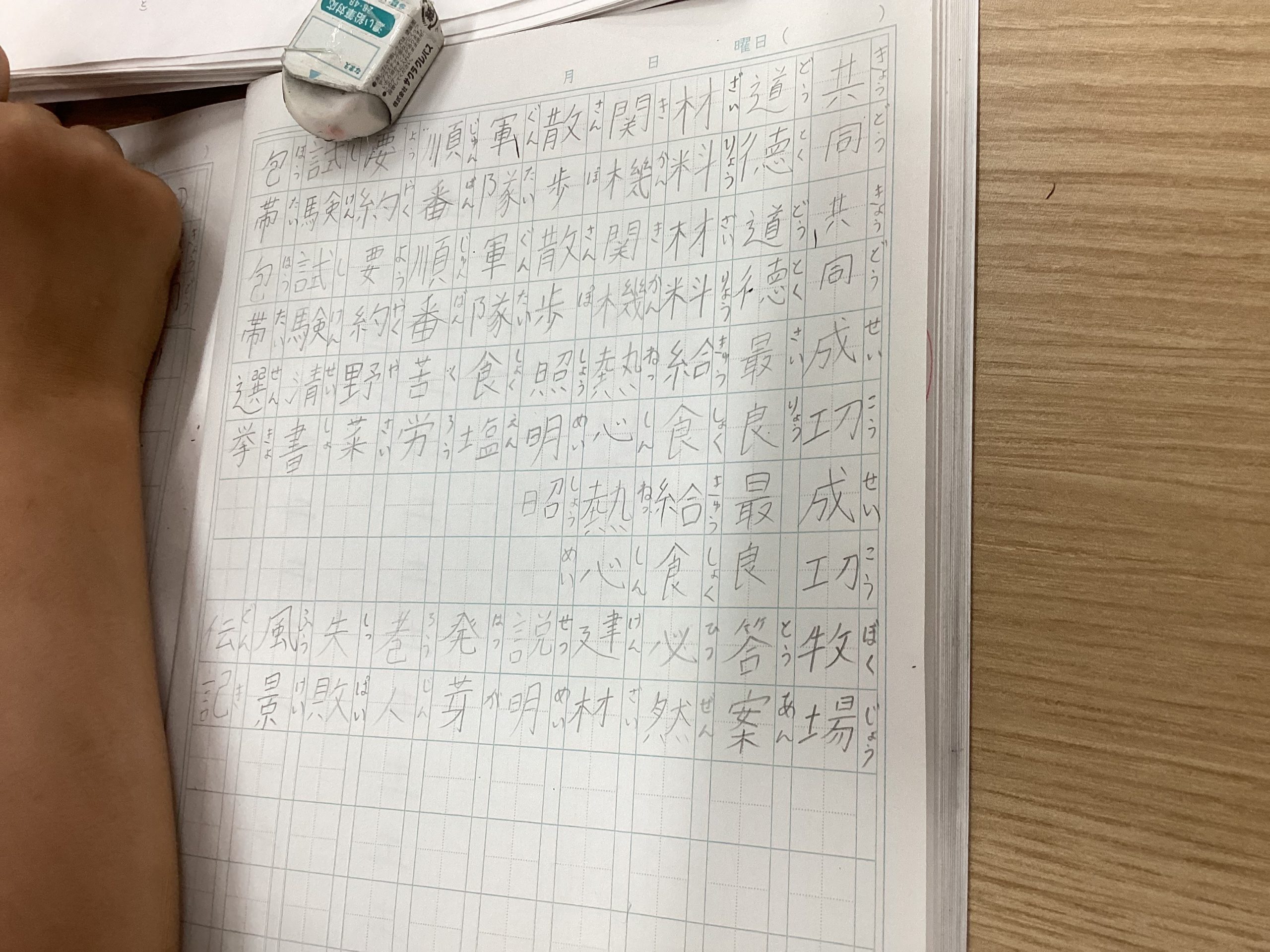 こちらは小4の子で授業でやる漢字テストに向けて練習中。何回か書いて練習をして、練習をした後に1~36番まで書けるかの確認していました。よく頑張っていますね。