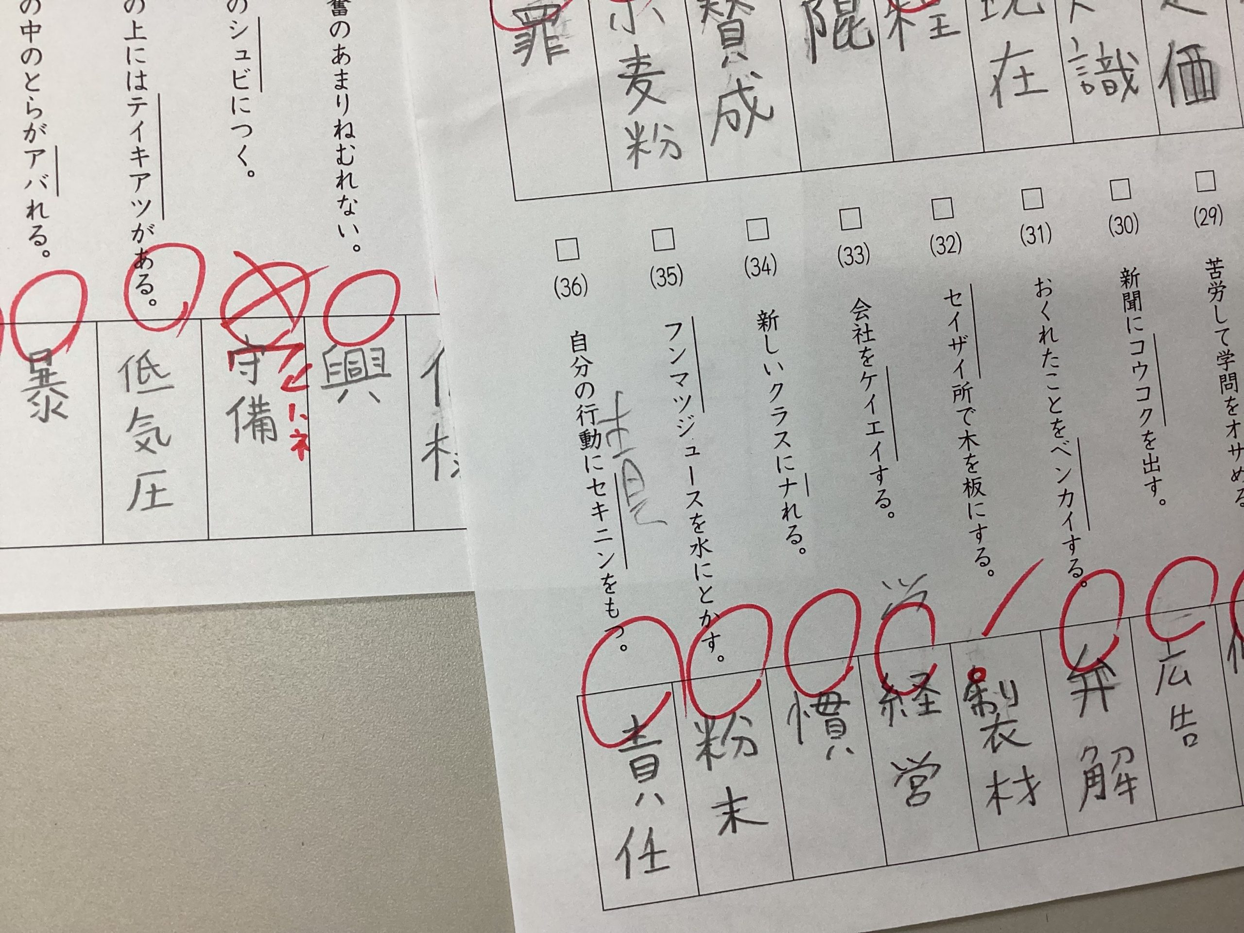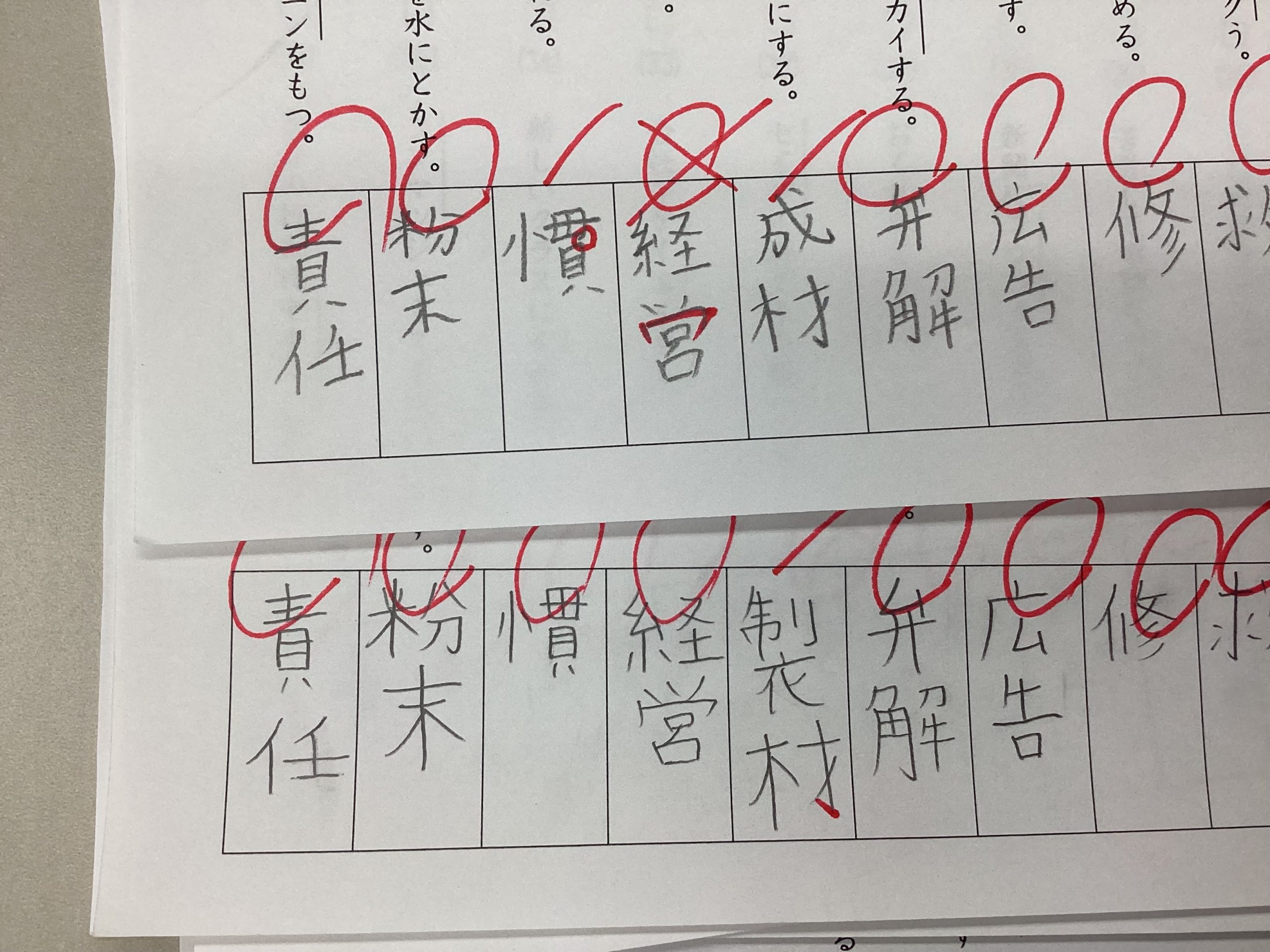 ちなみに下の写真は青木先生が小5の漢字テストの採点をした後の答案です。