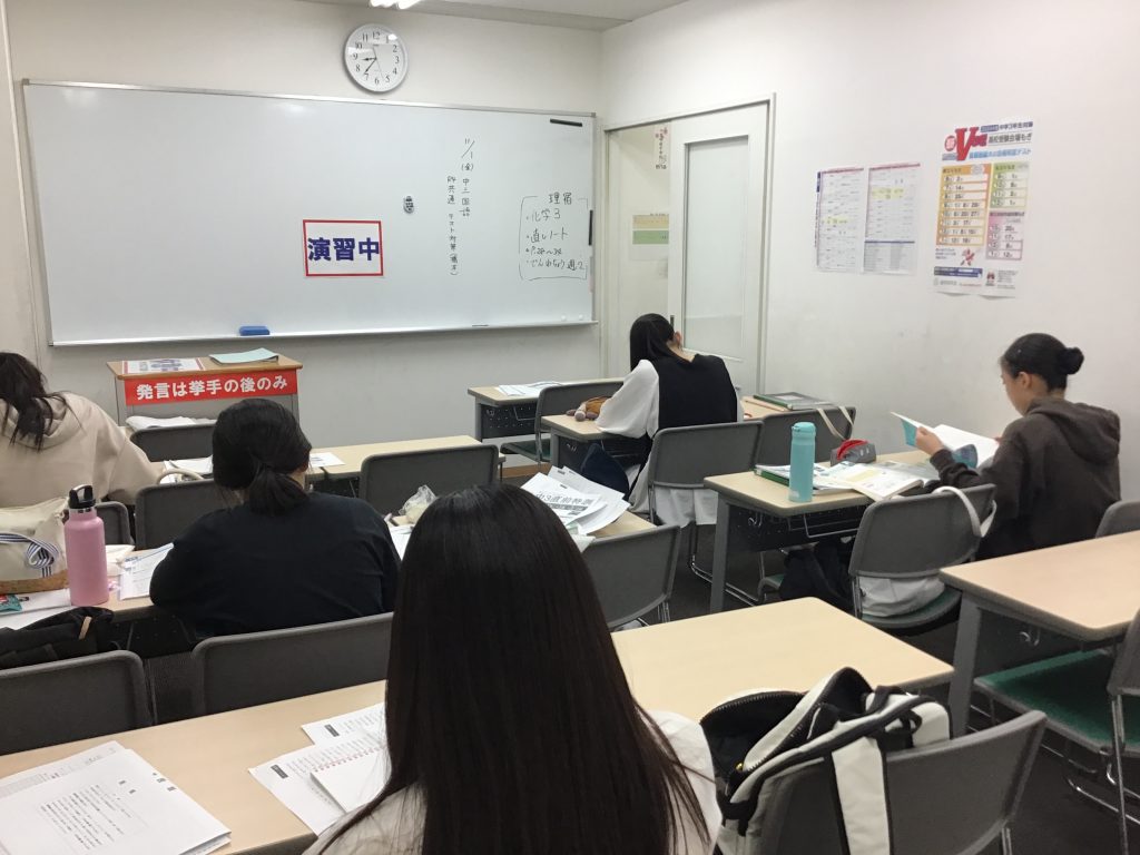 ここで、12月の仮内申が確定します。V模擬や演習が続いて大変ですが、授業前から集まって頑張ってくれています。