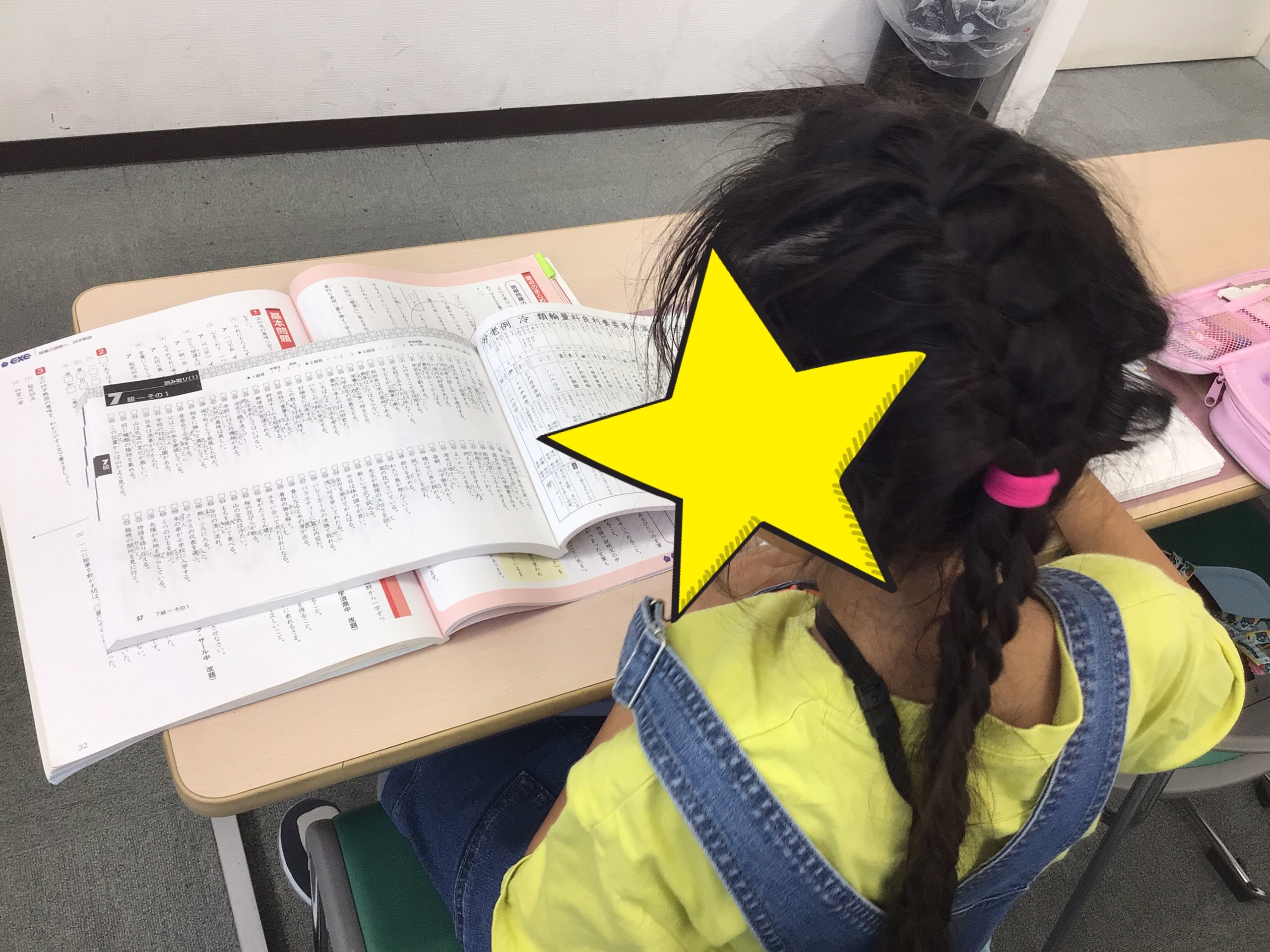 写真は、授業が始まる30分前に校舎に来て勉強をしている小4生の様子です。
